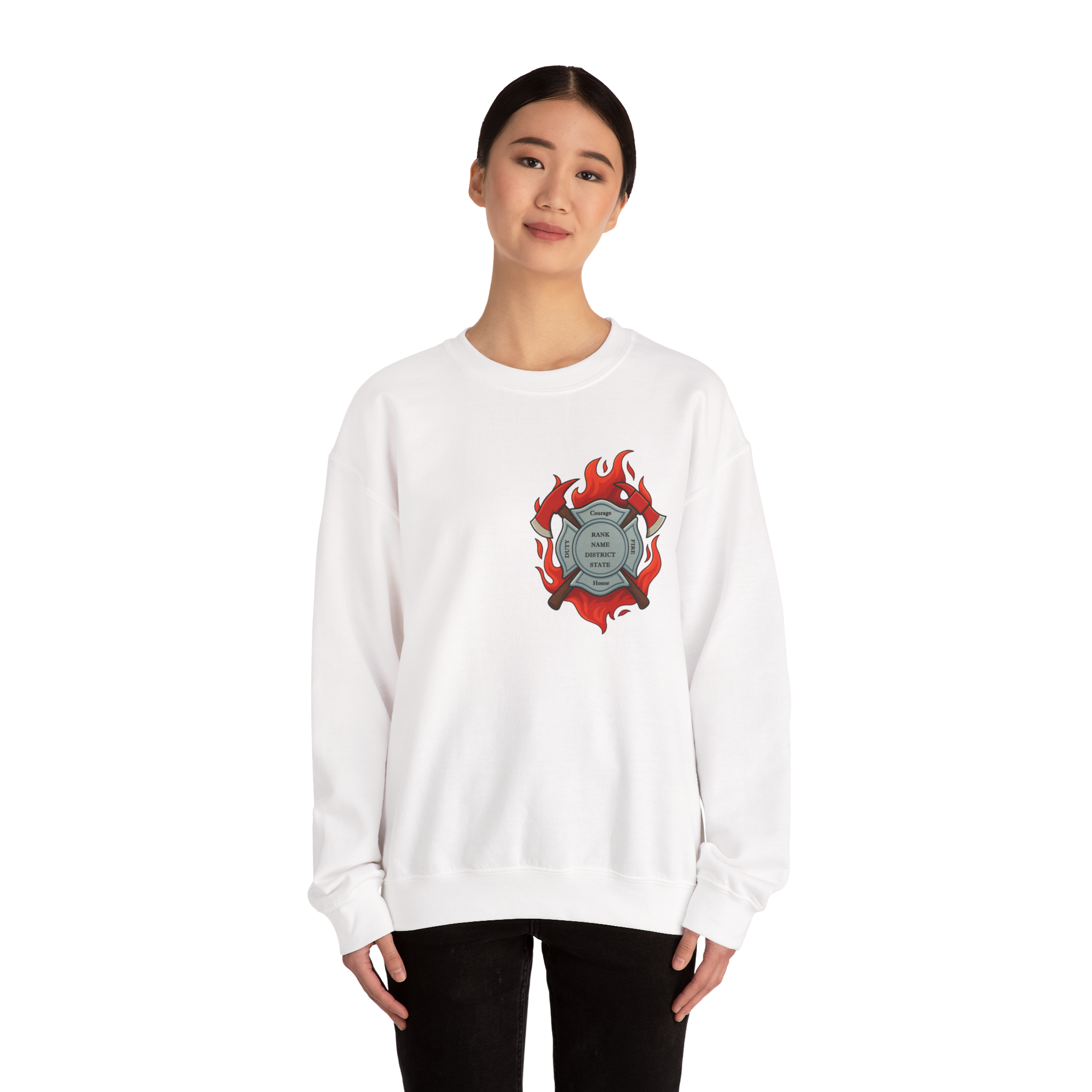 A bold firefighter tribute sweatshirt with a Maltese cross front design and an inspiring back graphic.