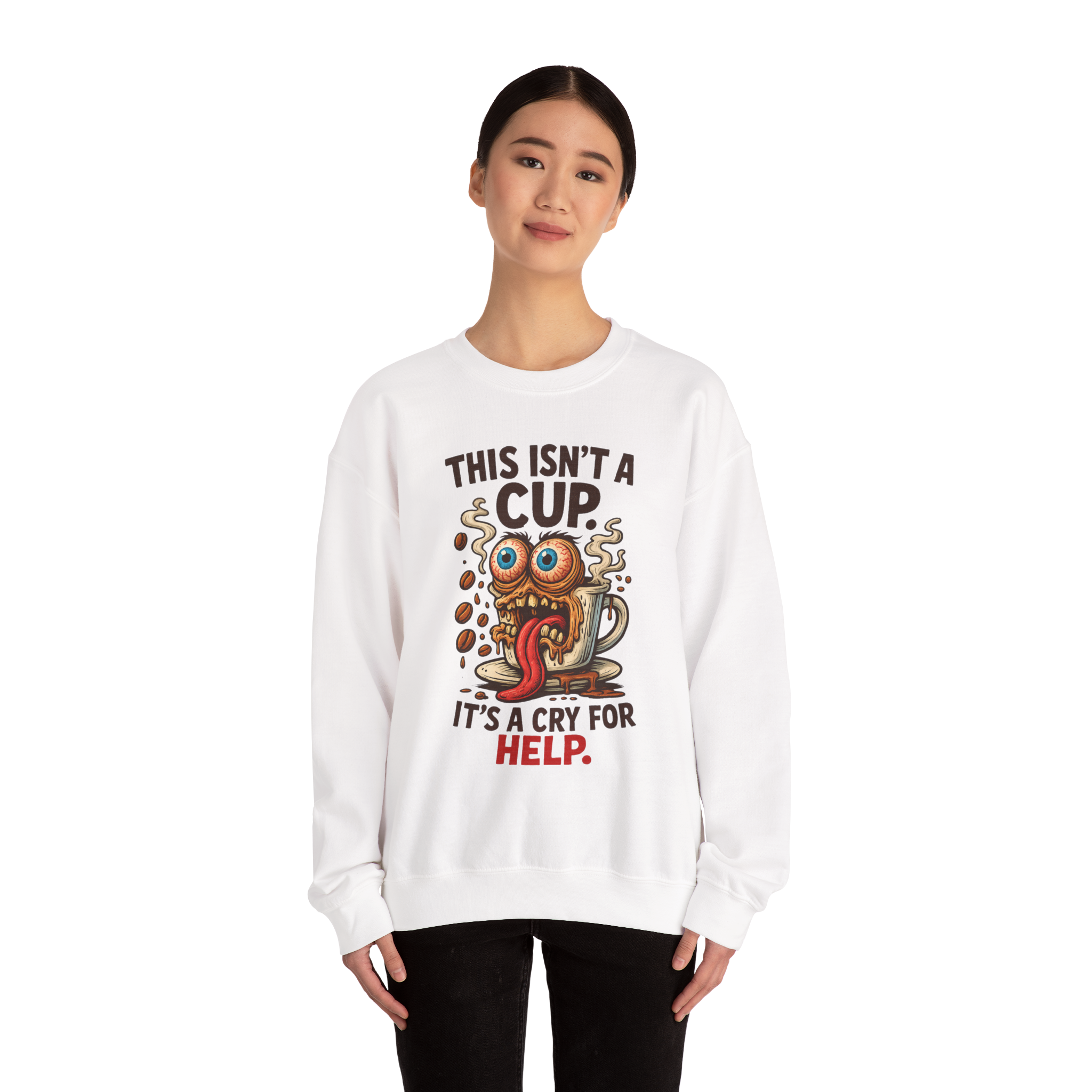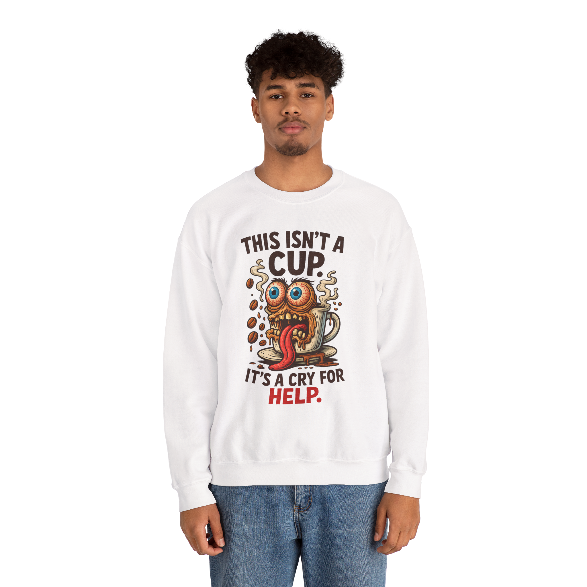 Some mornings hit harder than others—and this sweatshirt gets it. Starring a wild-eyed, meltdown-mode mug, this design is for those who use caffeine as a life raft. From spilled beans to that haunted stare, this is the kind of energy that screams "I’m functioning…barely." Wear it proudly. Or just wear it until the shaking stops.
