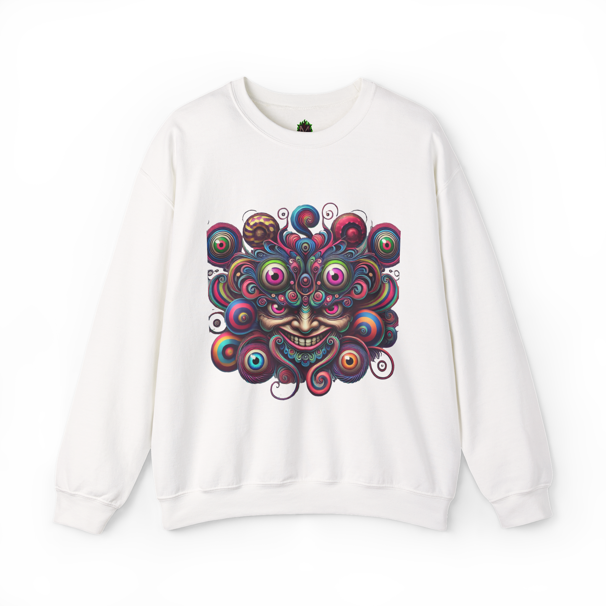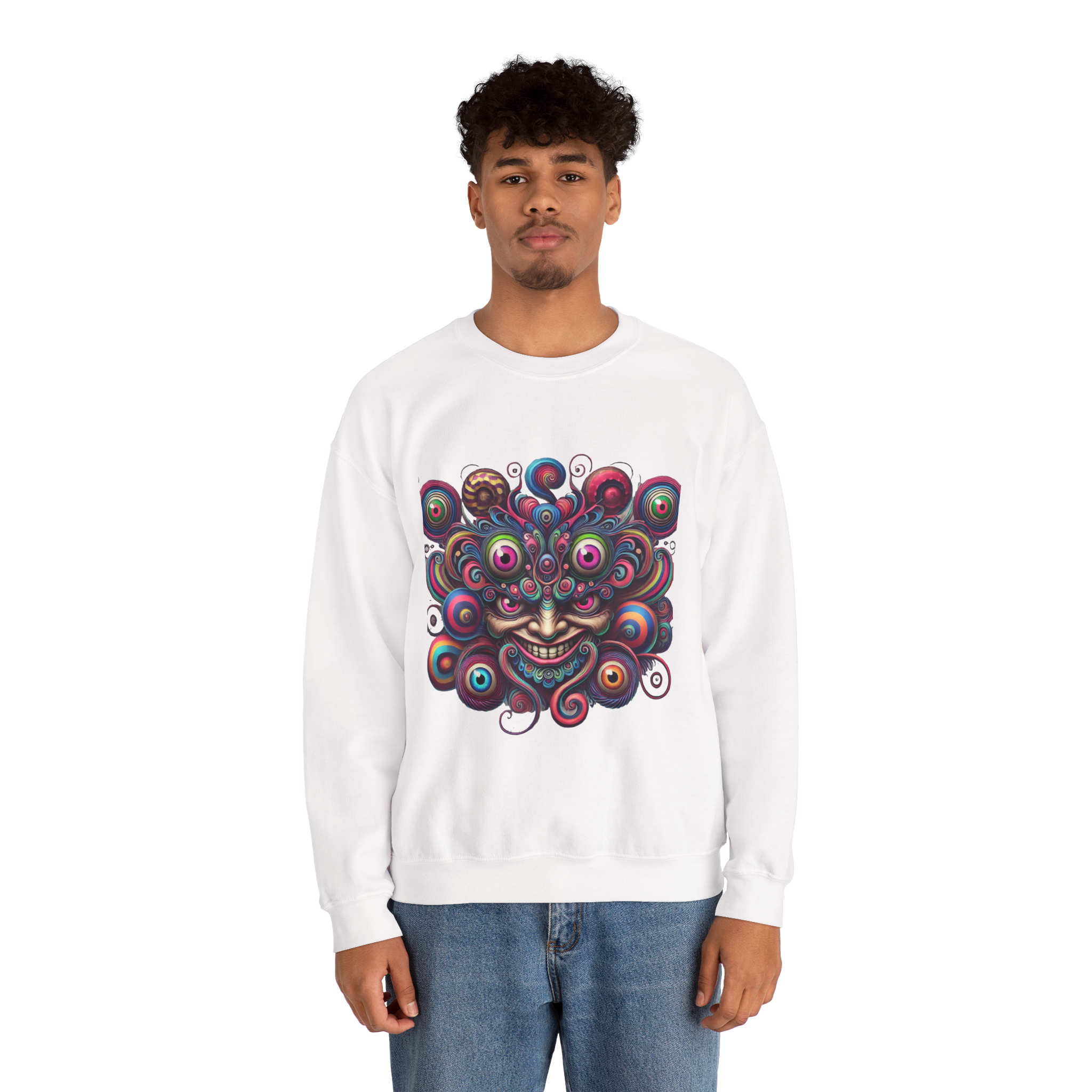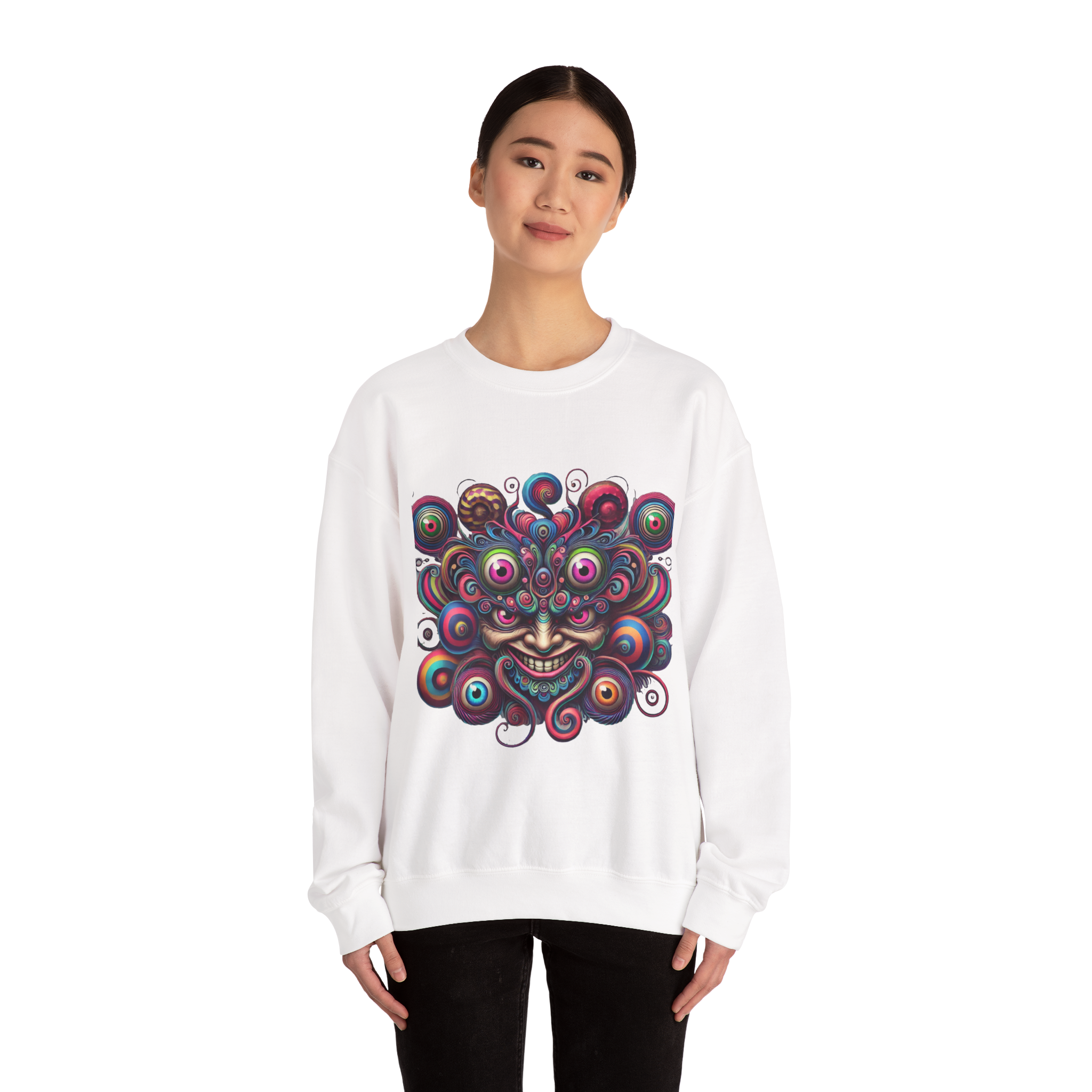 The Psychedelic Eye Swarm Crewneck is a deep dive into surreal, cosmic chaos.