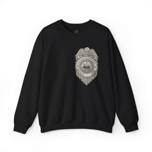 **Front Design:** A detailed firefighter badge symbolizing service, commitment, and bravery.