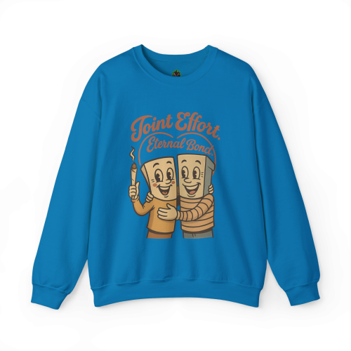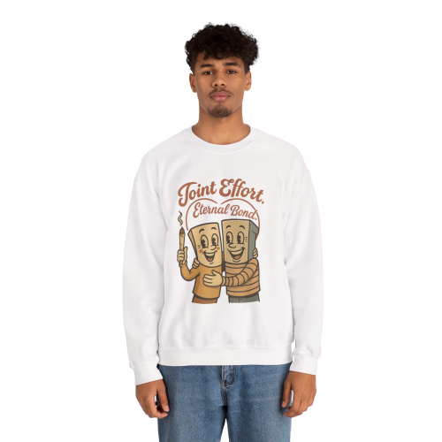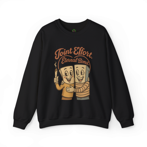 This Joint Effort – Eternal Bond Crewneck features two happy joints sharing the ultimate bro-hug. It’s retro, it’s heartwarming, and it’s lit—literally.