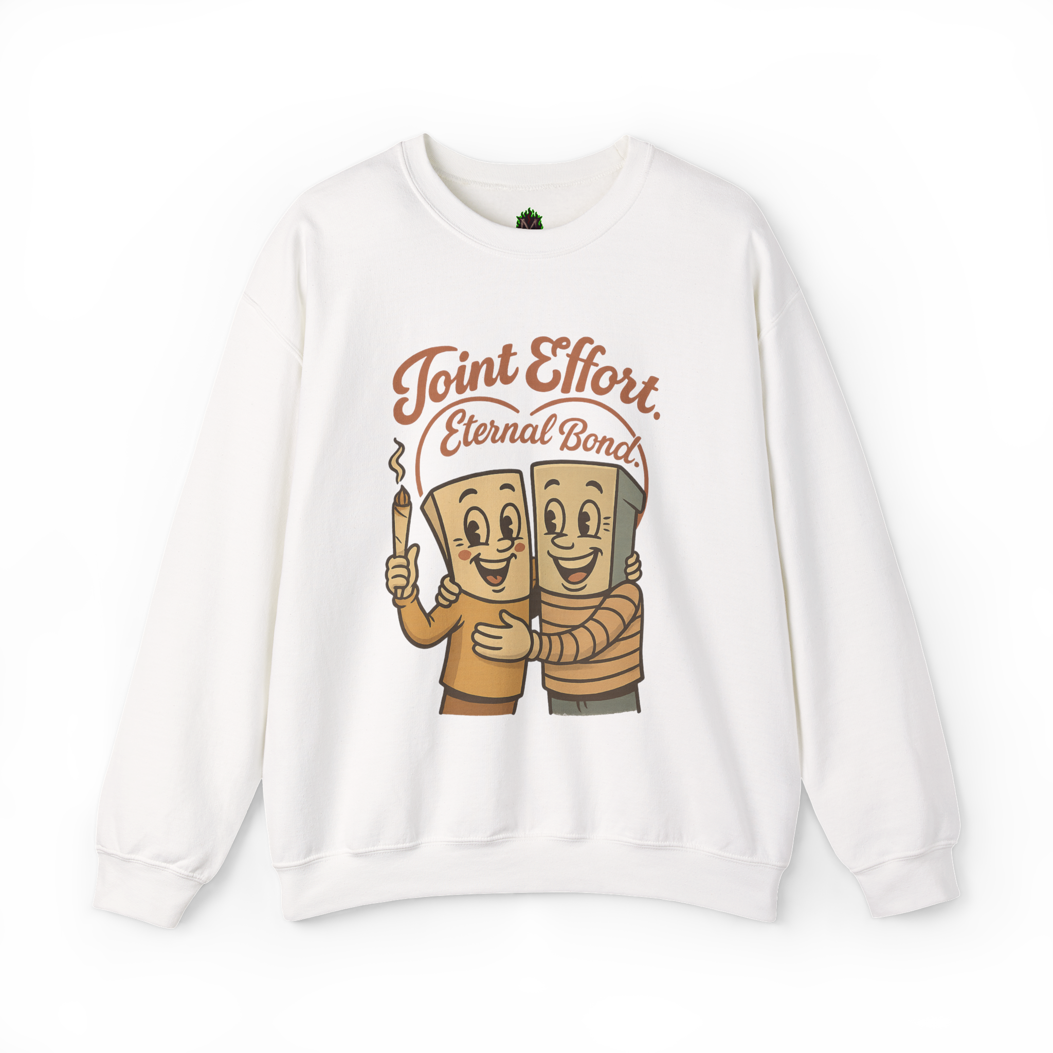 This Joint Effort – Eternal Bond Crewneck features two happy joints sharing the ultimate bro-hug. It’s retro, it’s heartwarming, and it’s lit—literally.