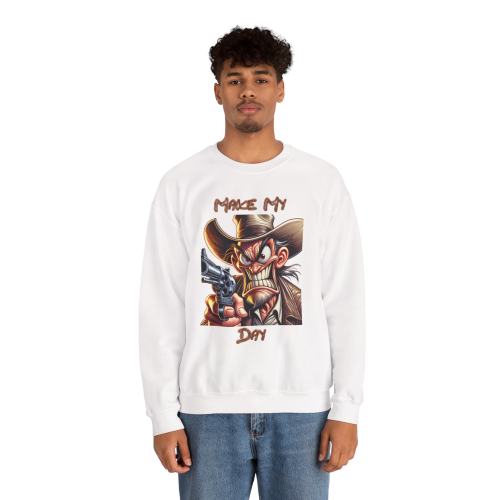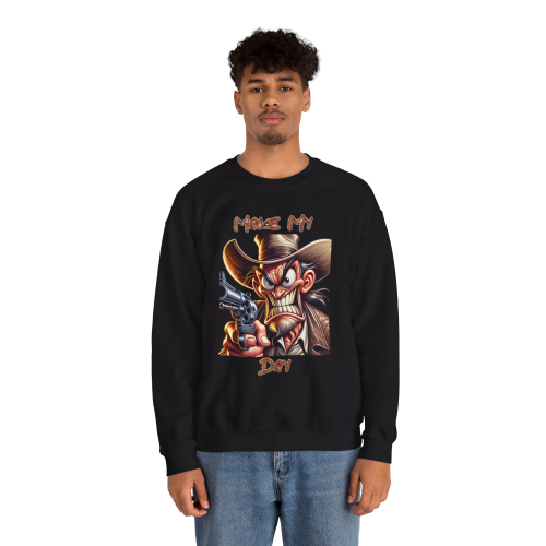 Channel your inner outlaw with the Make My Day Cowboy Crewneck.