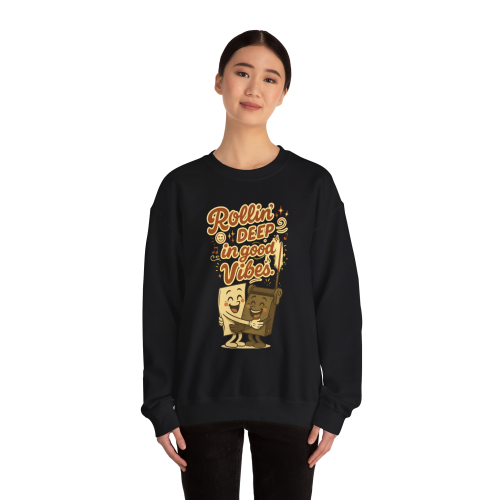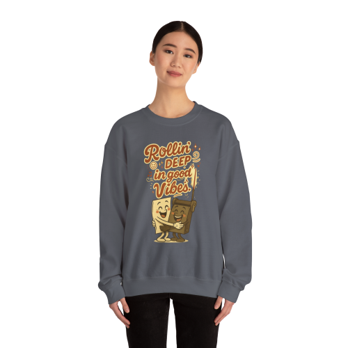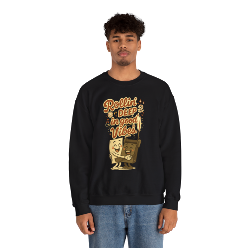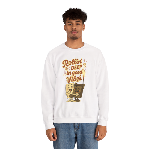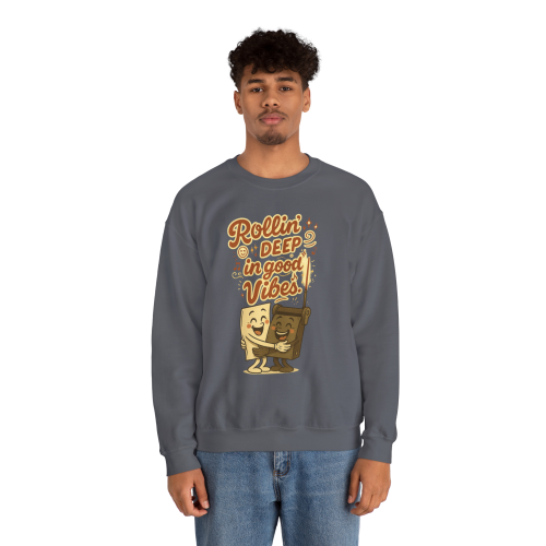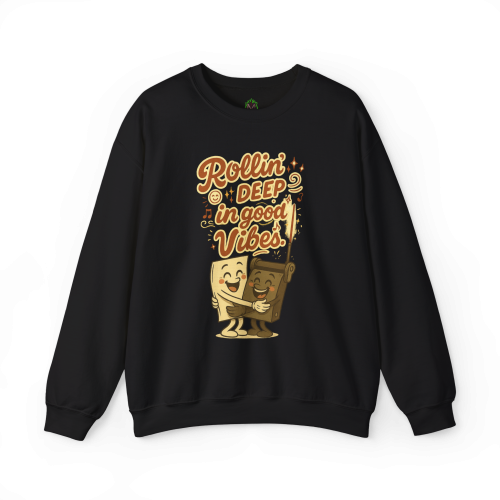 The Rollin' Deep in Good Vibes Crewneck features two stoner pals—one paper, one pre-roll—caught in a groove of chill beats and happy smoke. A vintage-style design that’s as mellow as your favorite playlist.