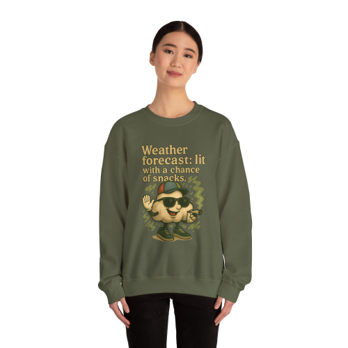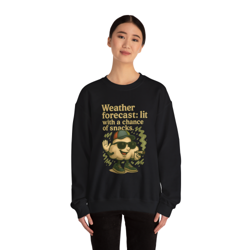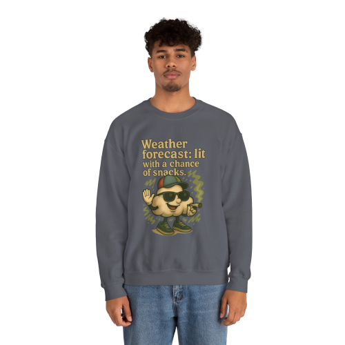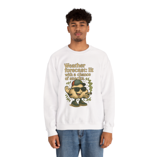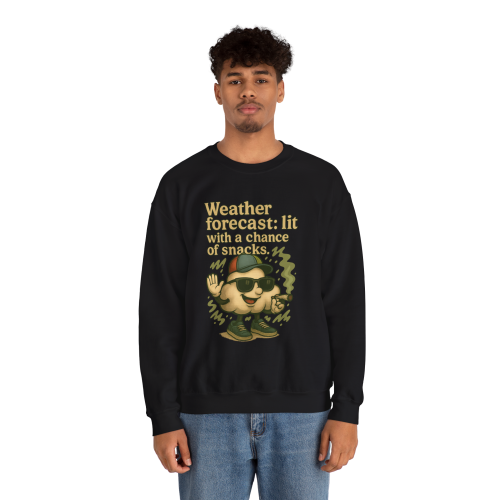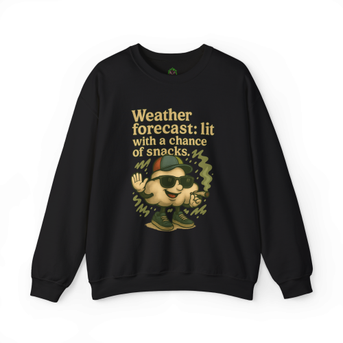 When the vibes are high and the cravings are real, this sweatshirt says it all. Featuring a baked cartoon cloud character in full stoner glory—complete with sunglasses, hat, and joint—this design delivers serious laughs and chill energy. Whether you're sparking up or just love weather puns, this one’s your new go-to.