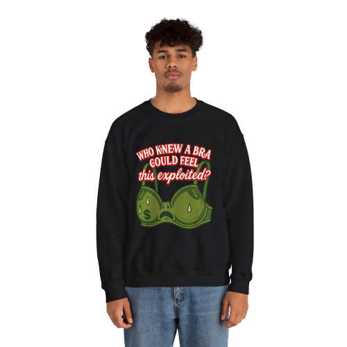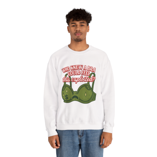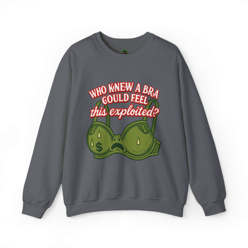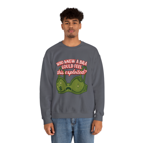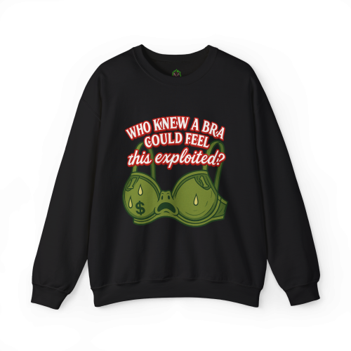 Who Knew a Bra Could Feel This Exploited? This crewneck delivers equal parts sass and sarcasm with a side of capitalist truth.