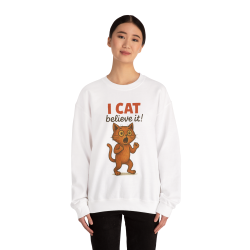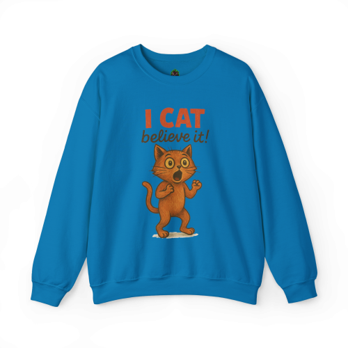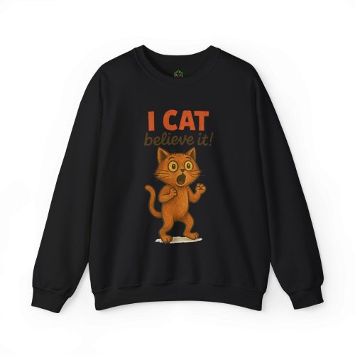 I Cat Believe It! is pure cartoon disbelief in wearable form.
