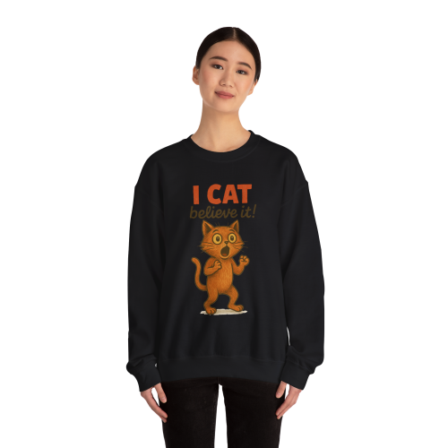 Sometimes the only reaction is pure feline shock—and this crewneck nails it.