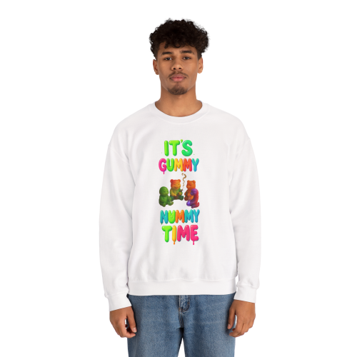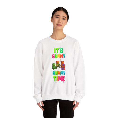 The design features three vibrant gummy bears, two passing a joint, with bright, drippy “It’s Gummy Nummy Time” lettering in playful colors. It’s fun, eye-catching, and a little bit rebellious.