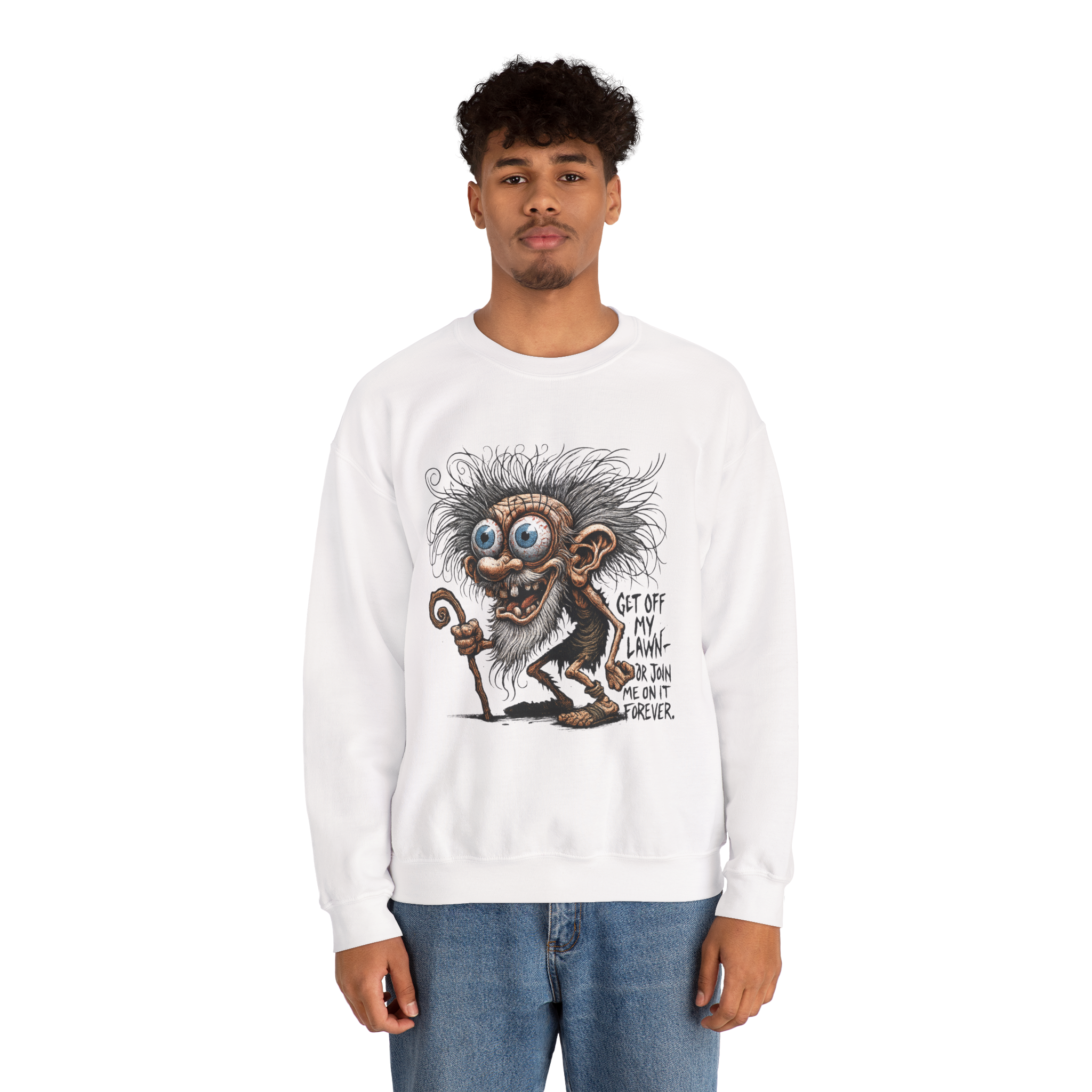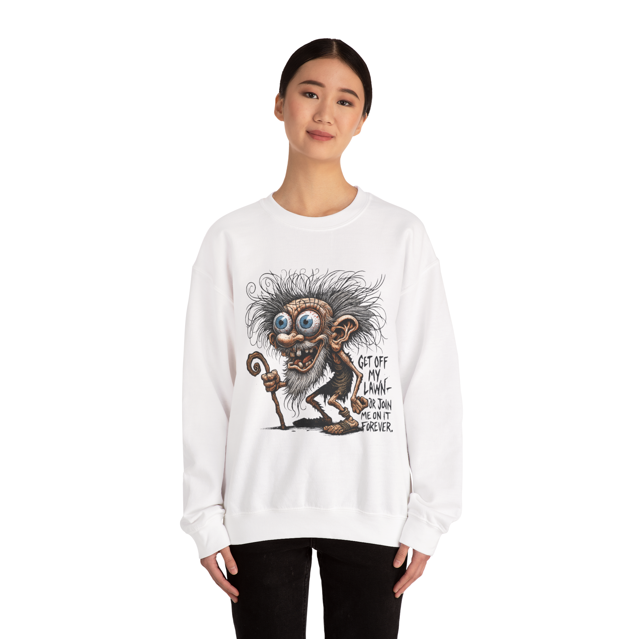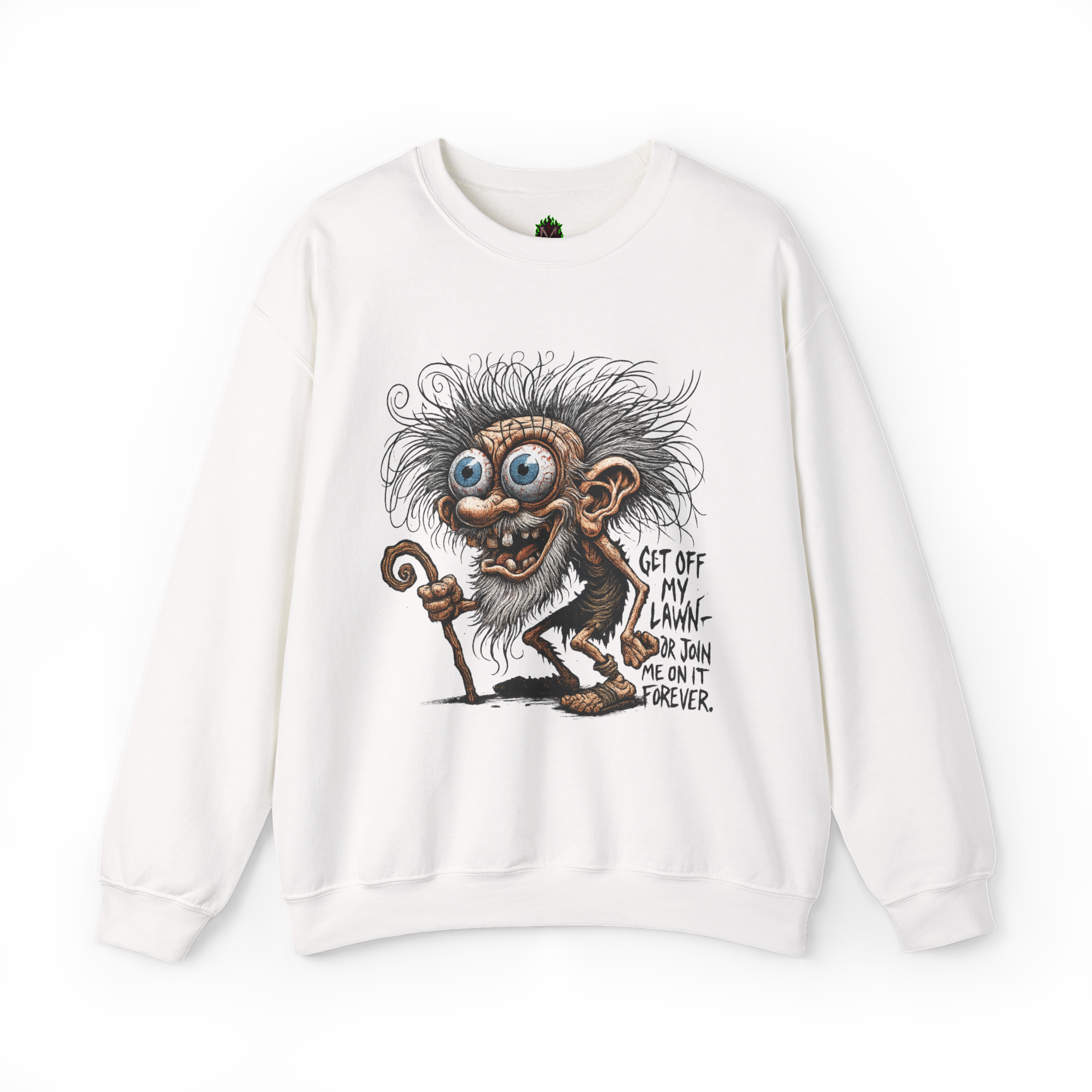 This isn’t your average grumpy old man. With a cracked cane, eyes like bottomless voids, and an expression that screams “I’ve buried worse,” this sweatshirt is your official notice to the world: you're not to be messed with. Perfect for the aging punks, the cursed neighbors, and the folks who’ve seen things. Dark humor meets unsettling art in a look that’s impossible to ignore.