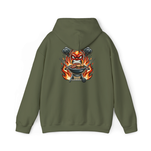 Grillmaster Hoodie – Flame Badge Front + Demon BBQ Back