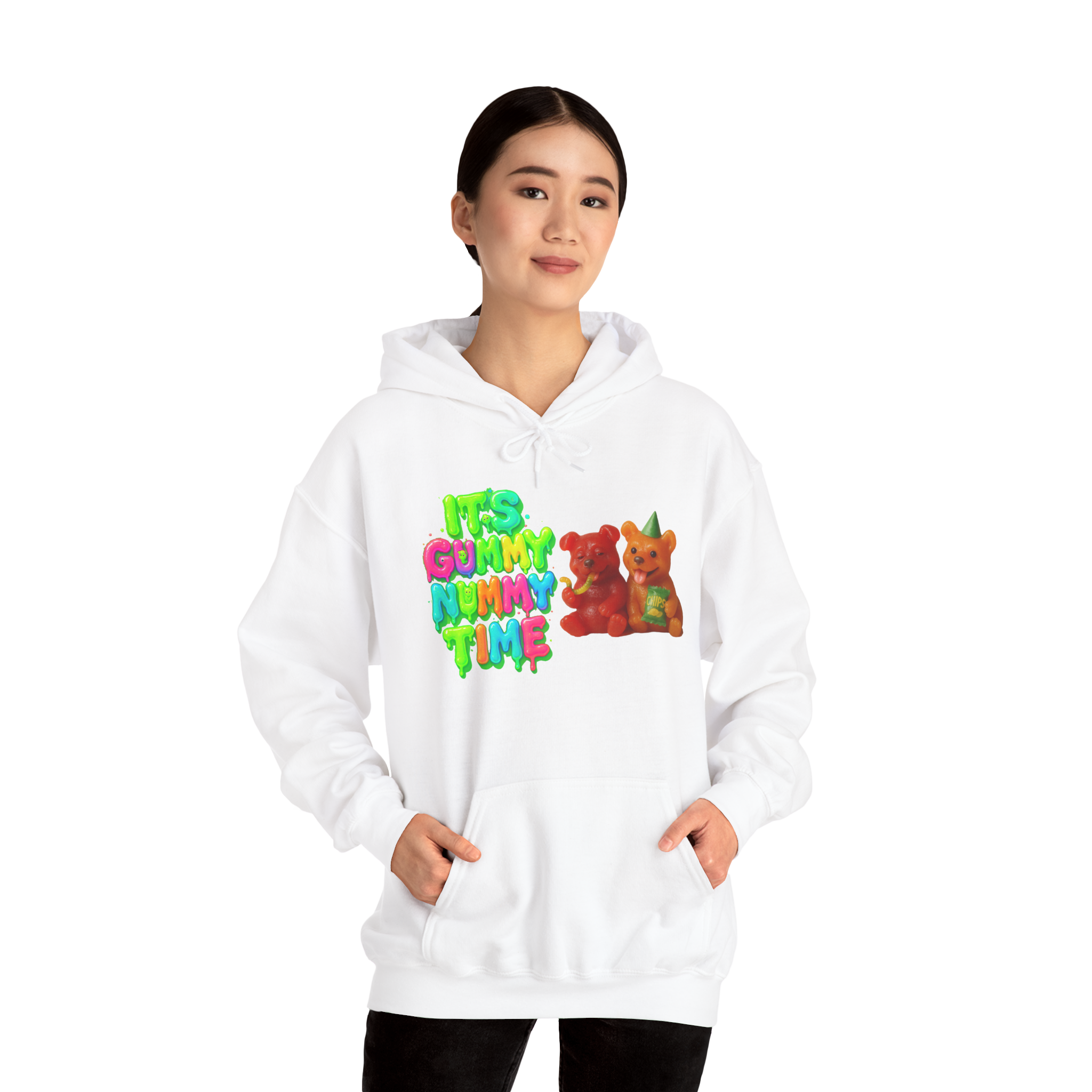 It’s Gummy Nummy Time and these bears are baked, bold, and ready to vibe. Drenched in colorful goo-drip font and sugary stoner energy, this hoodie is a walking snack attack.