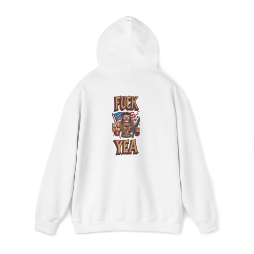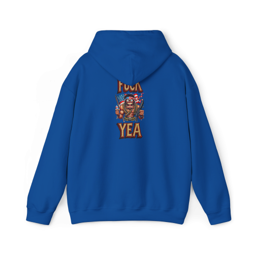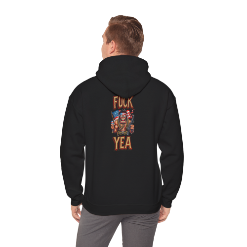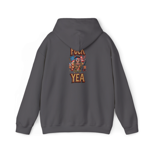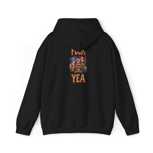 F*ck Yea – because nothing says freedom like a gun-toting, flag-waving, snack-holding maniac with a war cry. This back-printed hoodie delivers explosive patriotism with unapologetic flair.