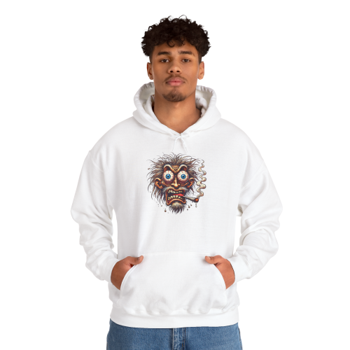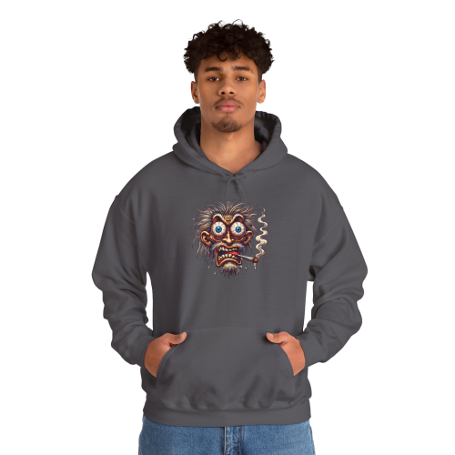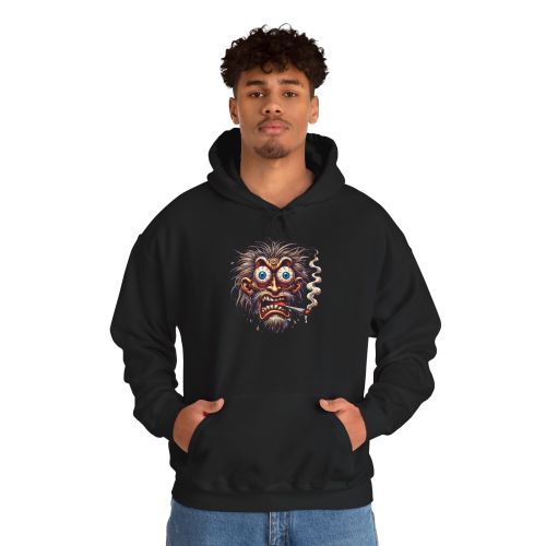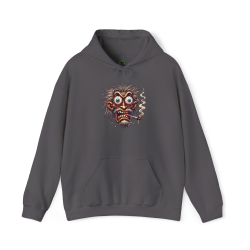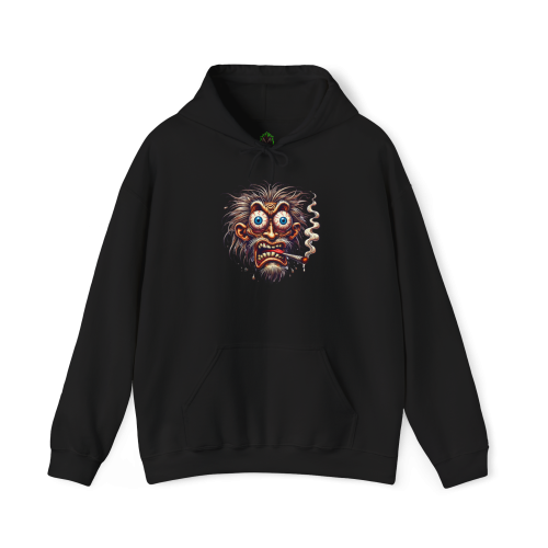 Burnt Out isn’t just a feeling—it’s a full-blown meltdown, and this hoodie captures it in glorious, bug-eyed detail. A deranged cartoon face stares back with full nervous breakdown energy, cigarette dangling, pupils dilated, and hair absolutely fried.