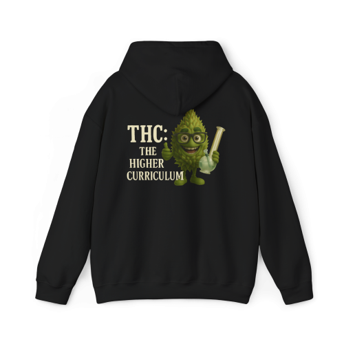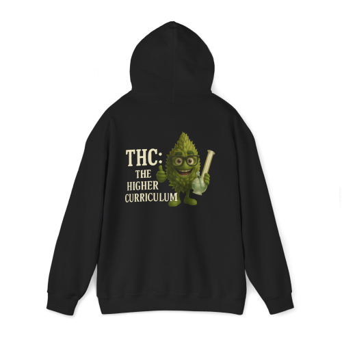 Forget the Ivy League—this little bud’s got knowledge and kush. The THC: The Higher Curriculum hoodie features a scholarly weed nug with thick glasses and a trusty bong, spreading wisdom one puff at a time. Whether you're a philosopher of the pipe or just believe in alternative education, this one's a must-have.