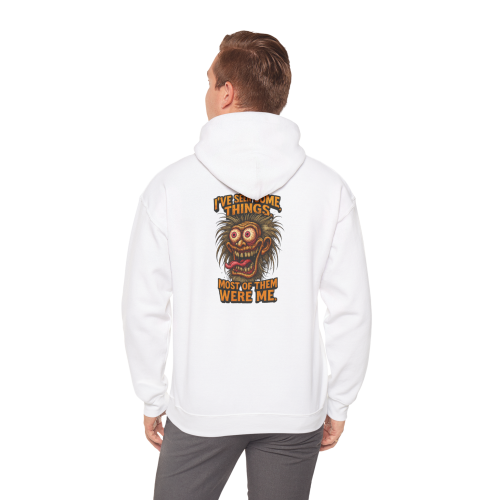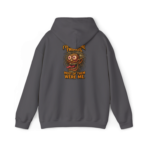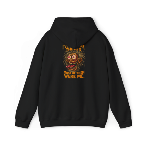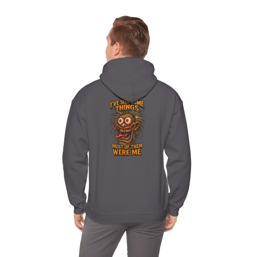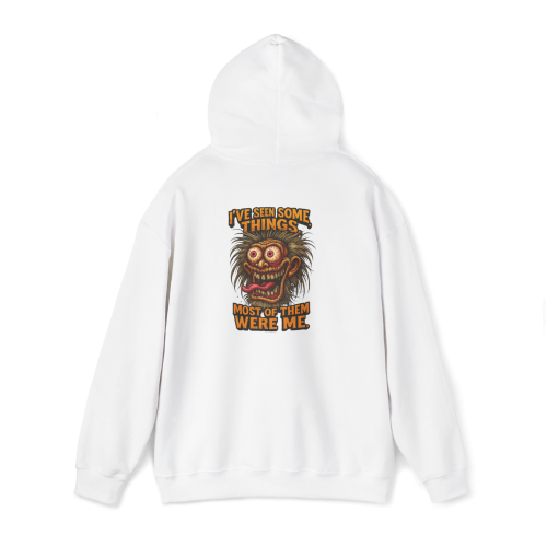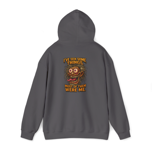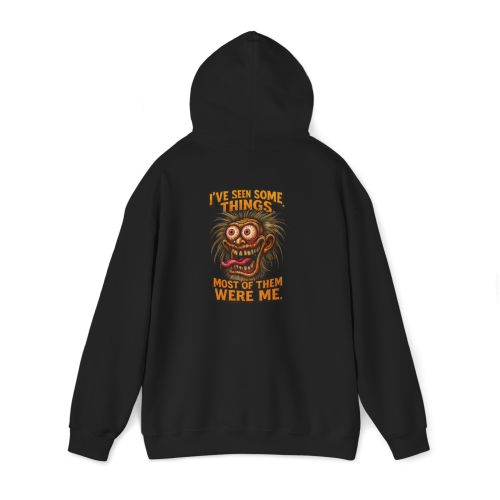 Featuring a crazed gremlin of a face with wild hair, bugged eyes, and an expression that screams ?I did what I had to do,? this design is for those who?ve seen some serious sh*t? and starred in most of it.