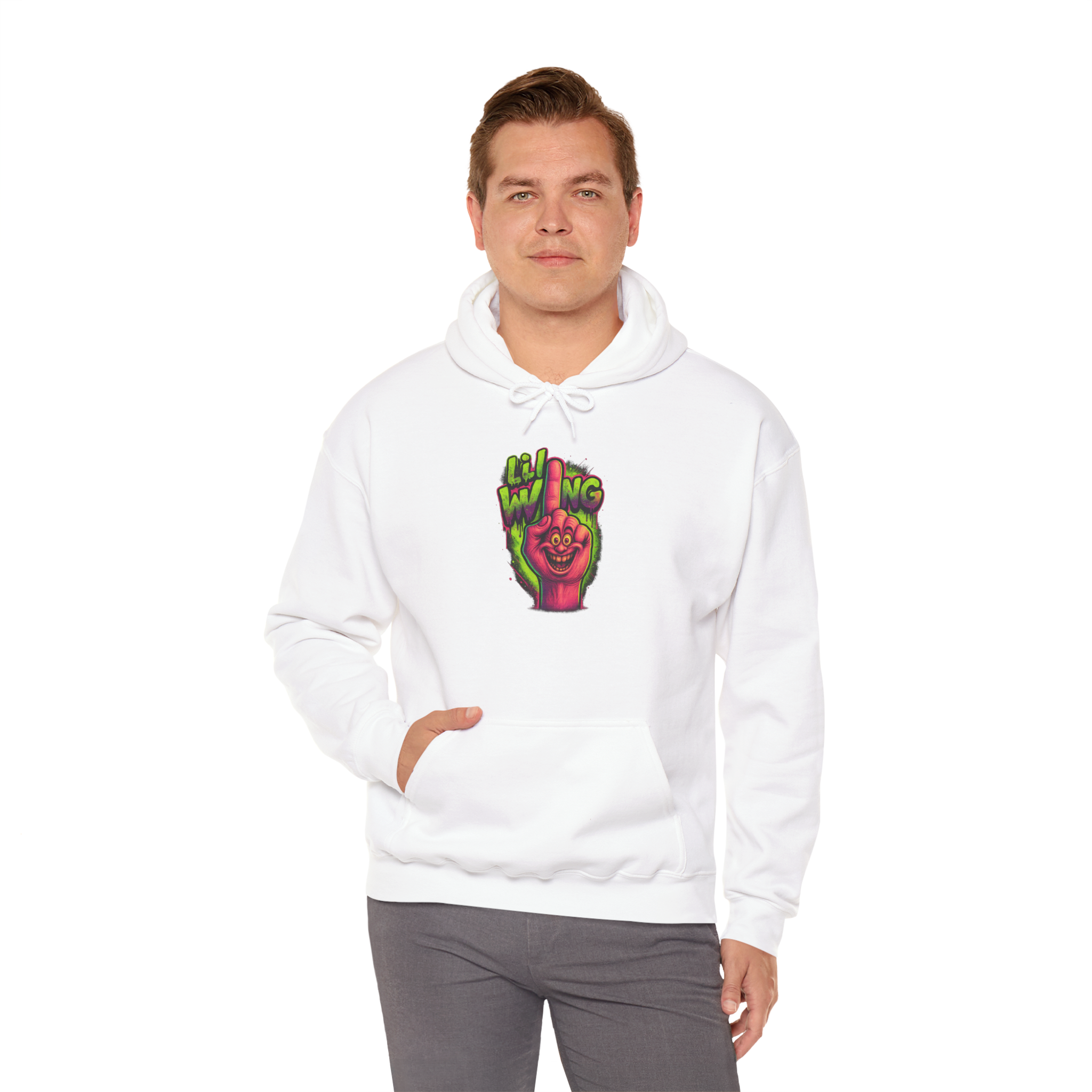 The Lil Wang: Acid Trip Edition hoodie is a full-frontal psychedelic meltdown. With nuclear neon greens, trippy pinks, and a grinning finger flipping the world off, this hoodie is made for loud personalities and warped senses of humor.