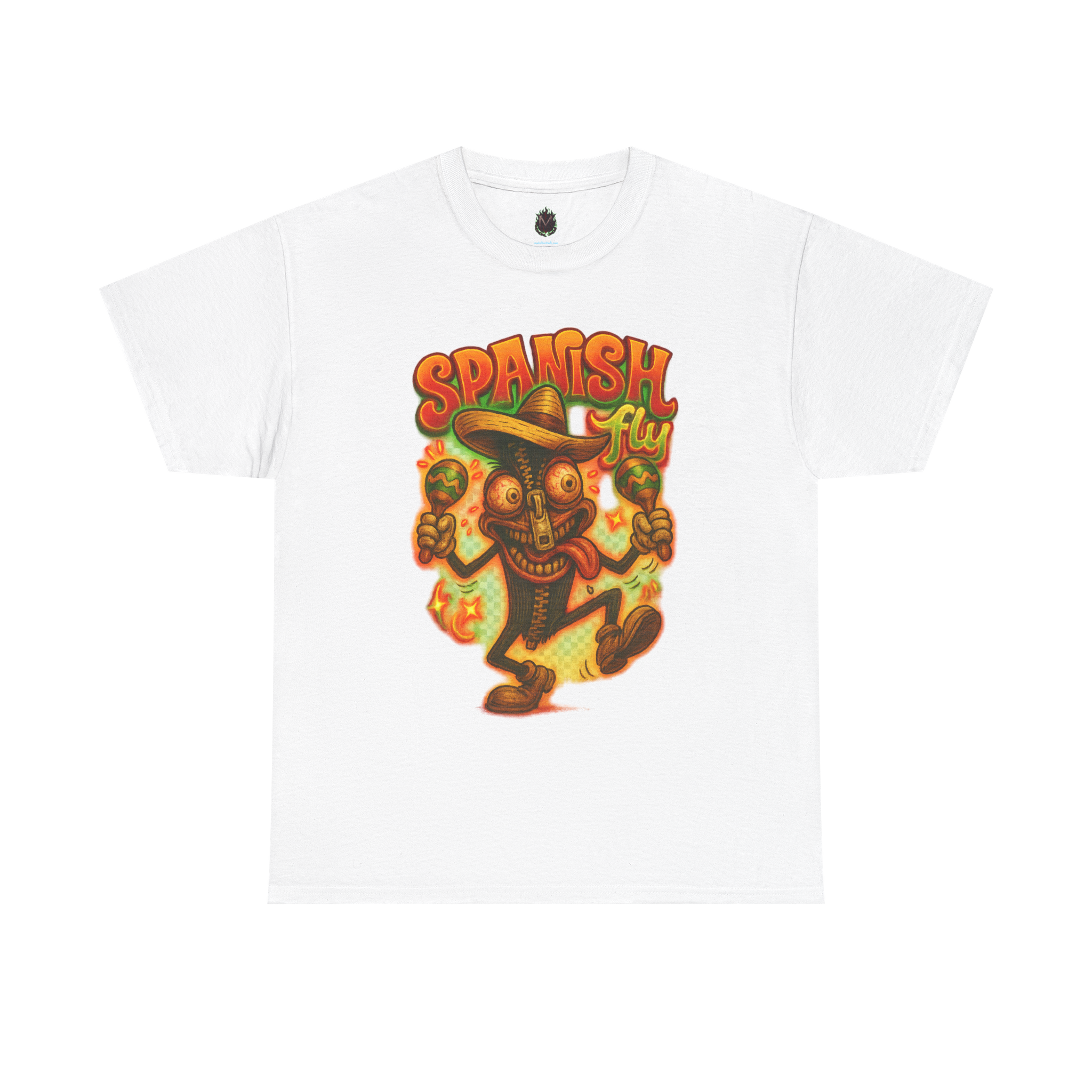 The Spanish Fly tee is a blazing blend of energy, humor, and borderline insanity.