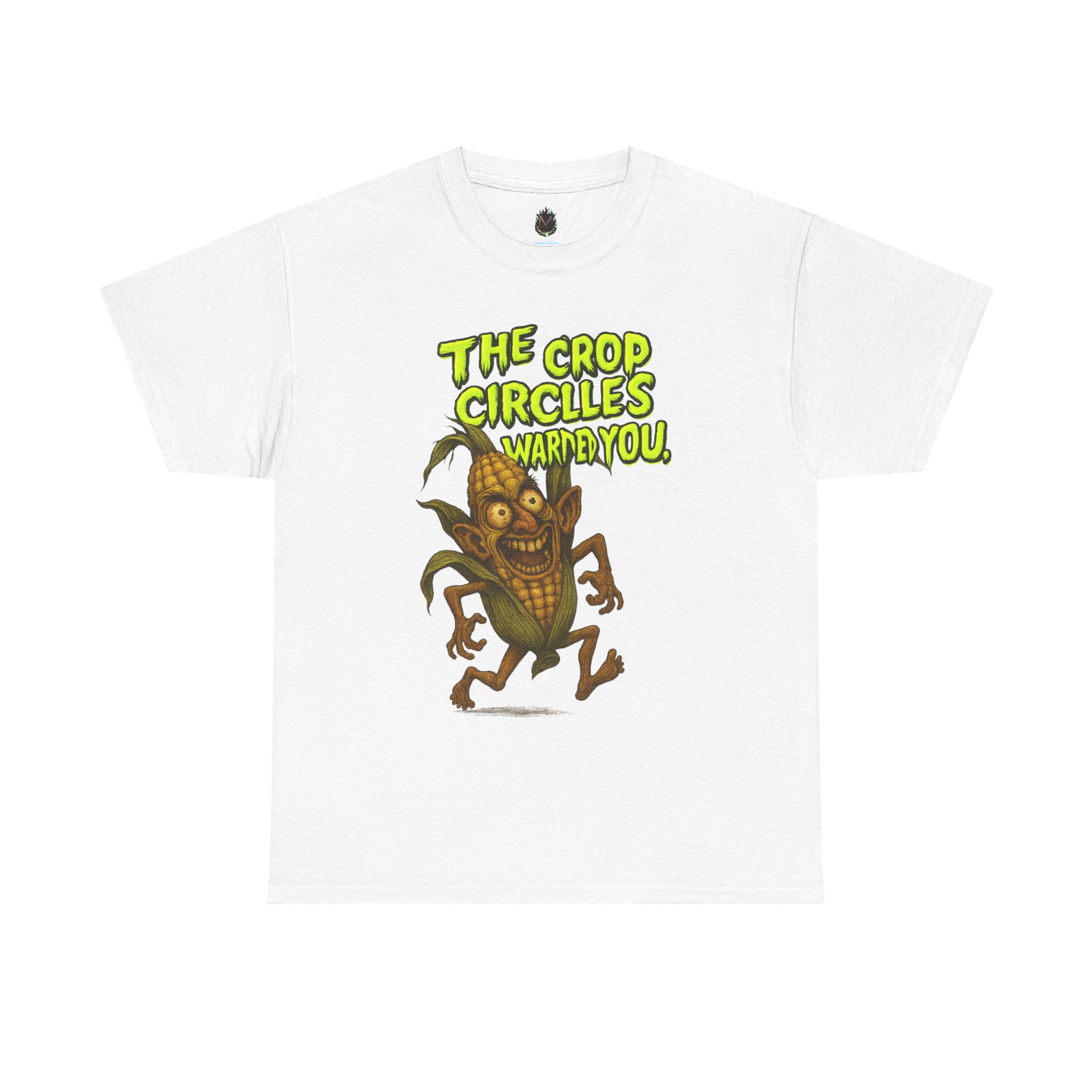 With crazed eyes, clawed hands, and full-on alien invasion energy, this graphic tee delivers dark humor with rural horror flair. “The Crop Circles Warned You” is part satire, part B-movie madness, and all weird.
