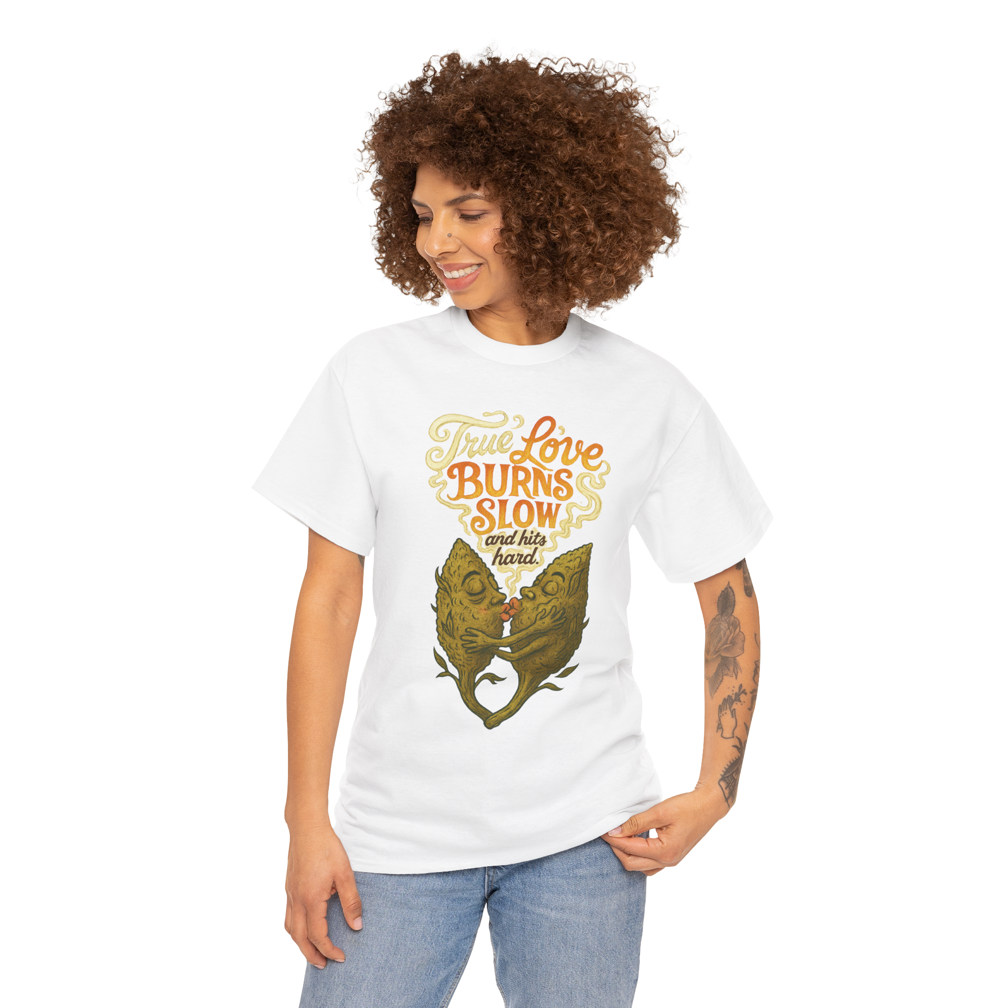 Featuring a swirling, poetic design, “True Love Burns Slow and Hits Hard” is a surreal love letter to passion, pain, and deep emotional truth.