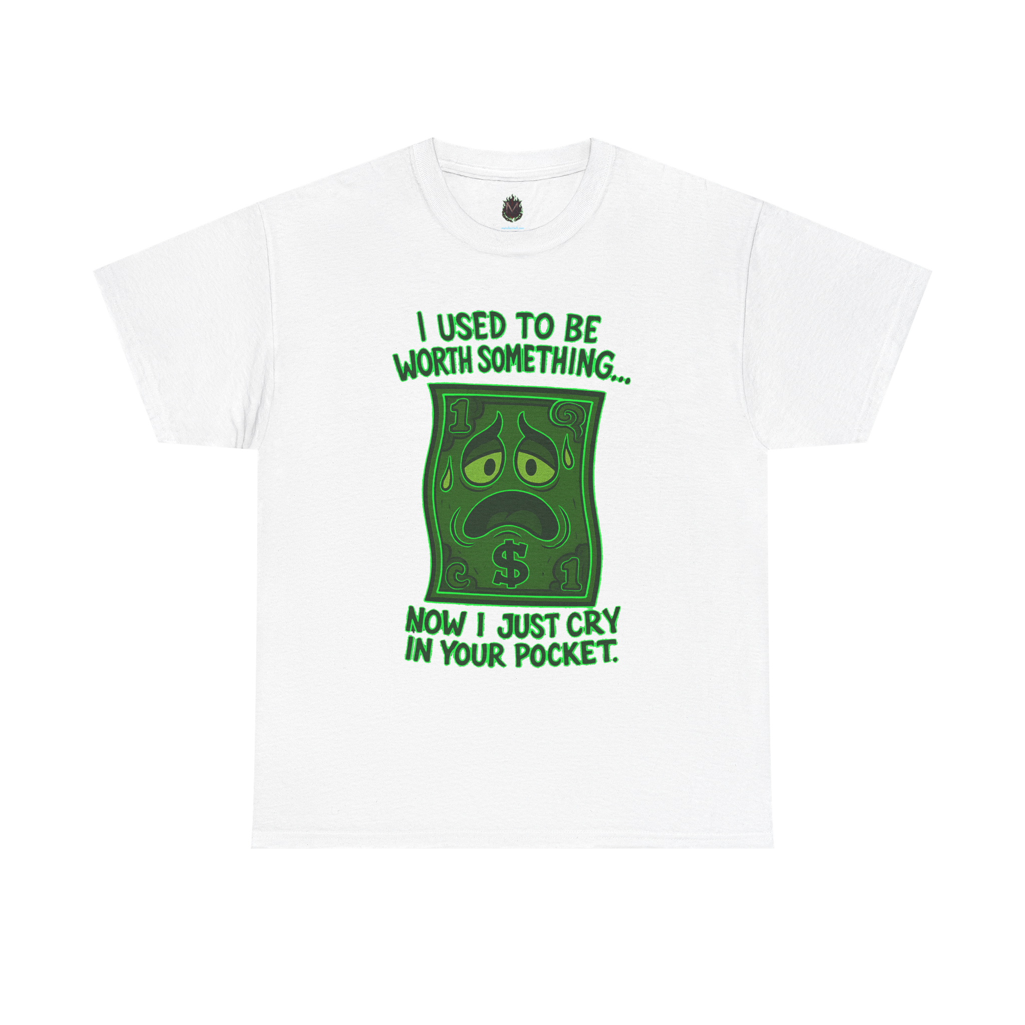 This shirt captures the spirit of the modern economy in one sad, sweaty dollar bill. Whether you're broke, joking, or both, this glow-in-the-dark green tee lets your wallet weep for you.