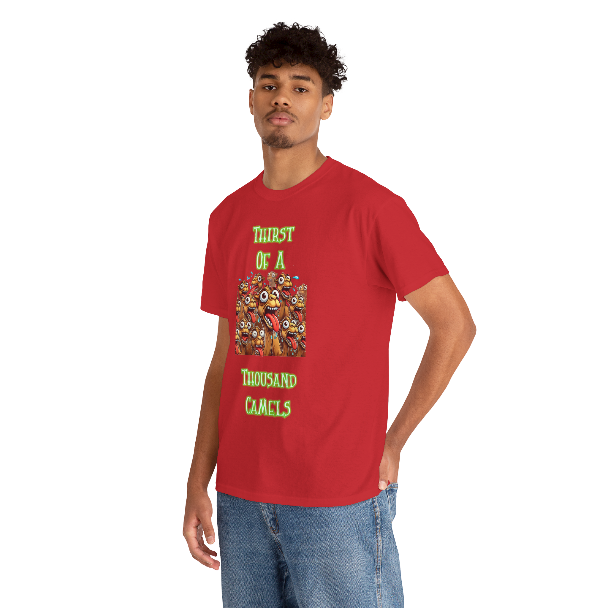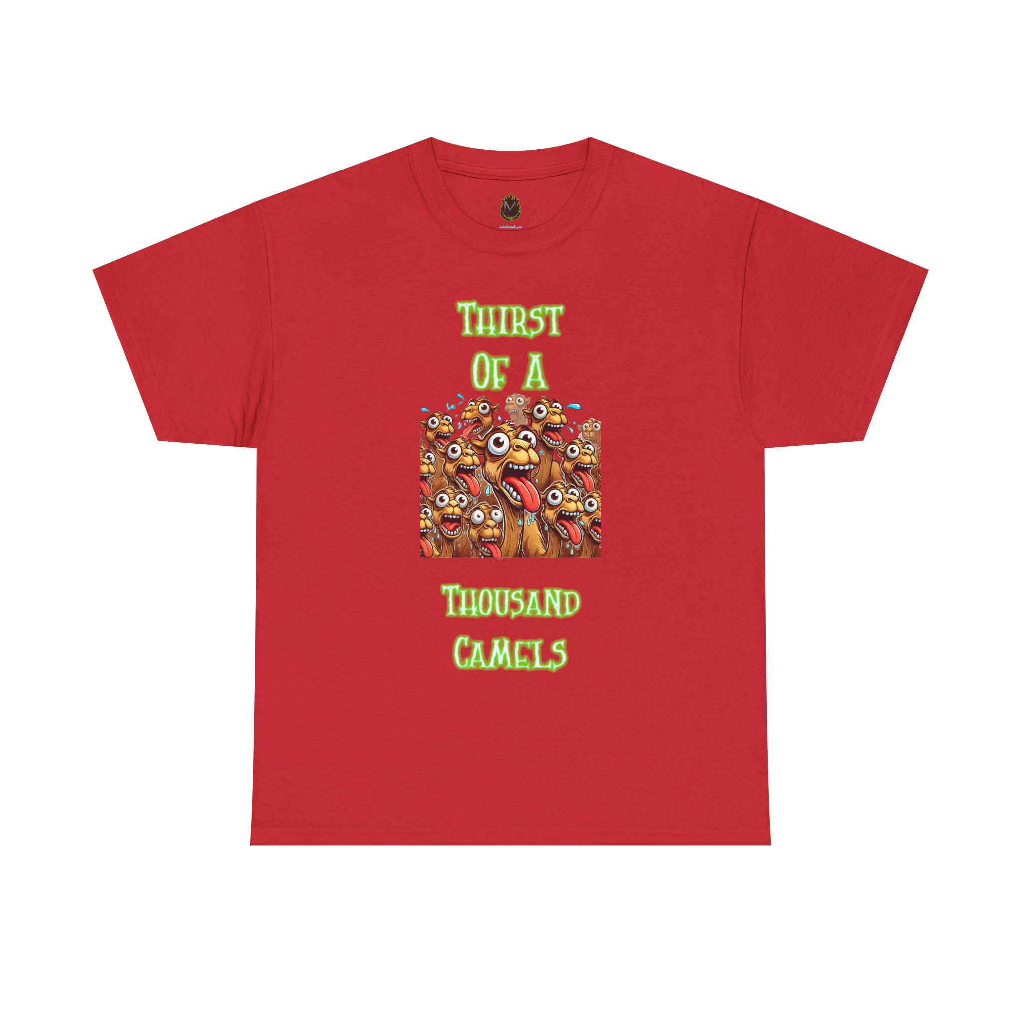 Quench your thirst for weird with this wild design featuring a chaotic crowd of cartoon camels, eyes bulging and tongues out, under the bold phrase “Thirst of a Thousand Camels.” It’s loud, it’s unhinged, and it’s the perfect way to express how drained you feel — emotionally, physically, or just plain thirsty.