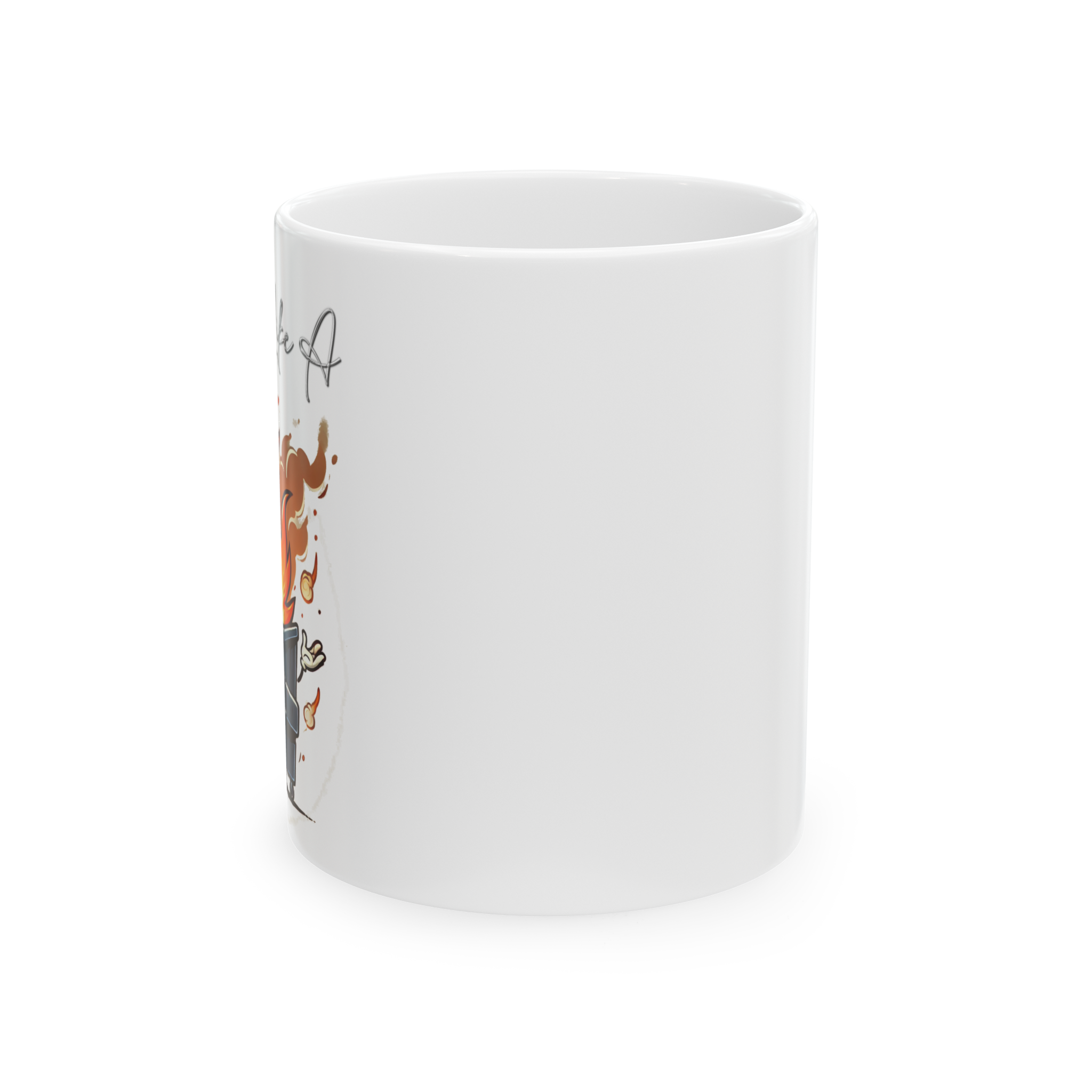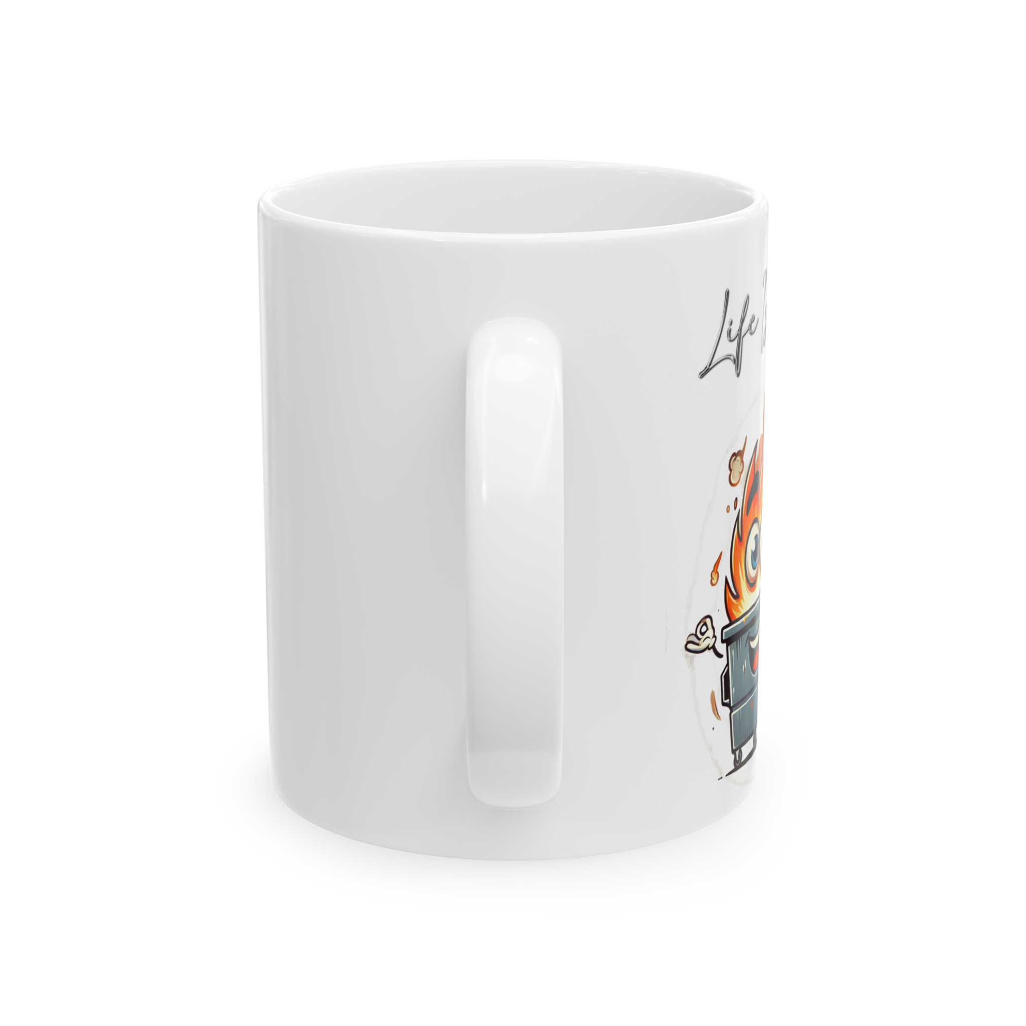 Some mornings just hit different—like waking up inside a smiling dumpster blaze. This mug captures that exact energy.