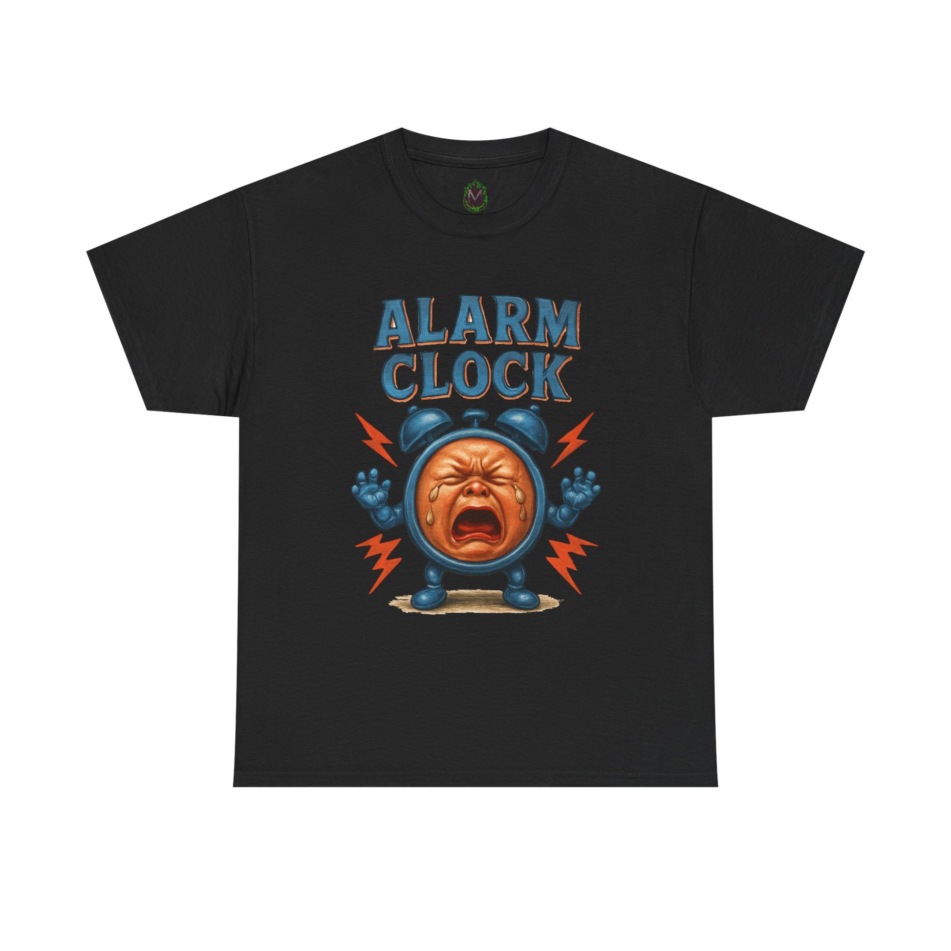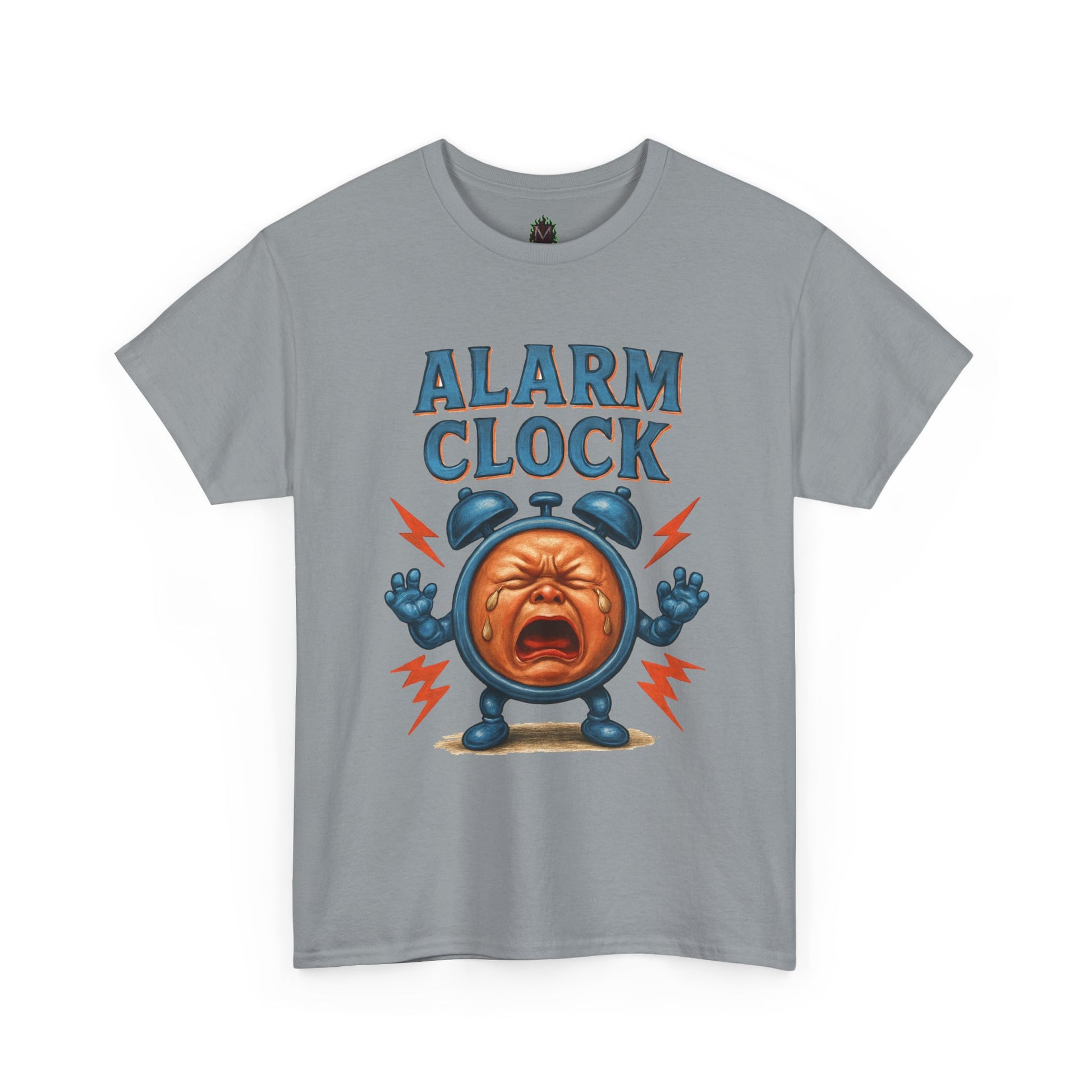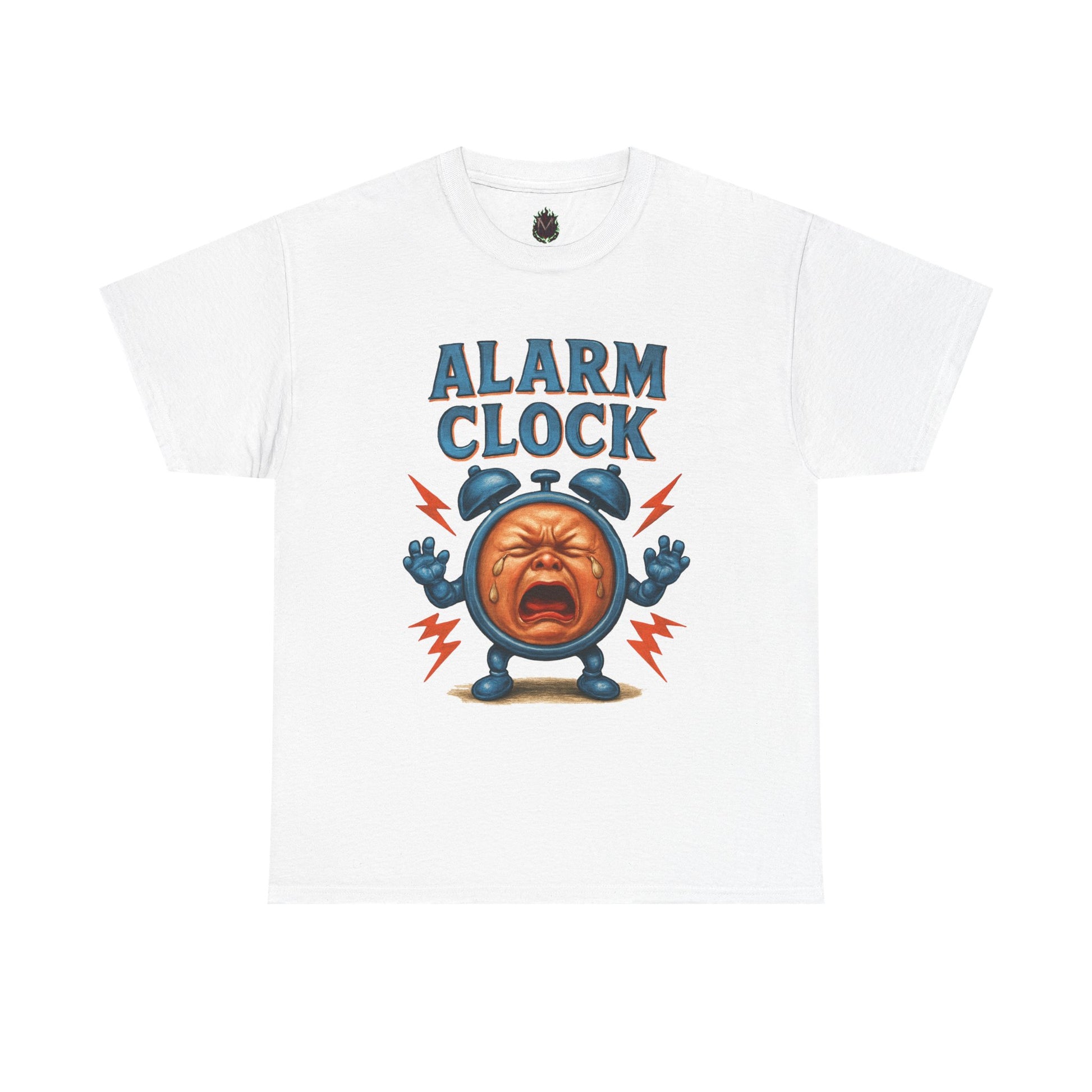 This classic cotton tee brings a wink of humor to everyday wear. The front features a bold retro-style illustration of a shouting alarm clock with lightning bolts and chunky lettering that reads “ALARM CLOCK.” The image sits centered on a clean white background, making the colors pop and the expression impossible to ignore. Lightweight but sturdy, the shirt wears like a lived-in favorite — relaxed through the body with a neat crew neckline and a soft tear-away label. It’s for mornings that need a little attitude and for people who laugh at life’s noisy moments. Wear it to coffee runs, casual meetups, or lazy weekends when the snooze button lost the battle.