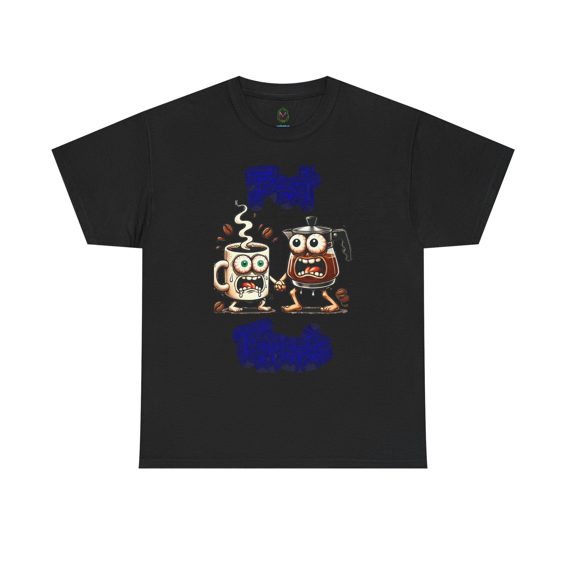 Start your day with chaos and caffeine in this hilarious "Best Frenemies" T-Shirt! Featuring a wildly animated coffee pot and mug with jittery, over-caffeinated expressions, this design perfectly captures the love-hate relationship we all have with coffee. With its bold, dark aesthetic and eye-catching details, this tee is a must-have for coffee lovers, baristas, and anyone who runs on caffeine-induced energy!