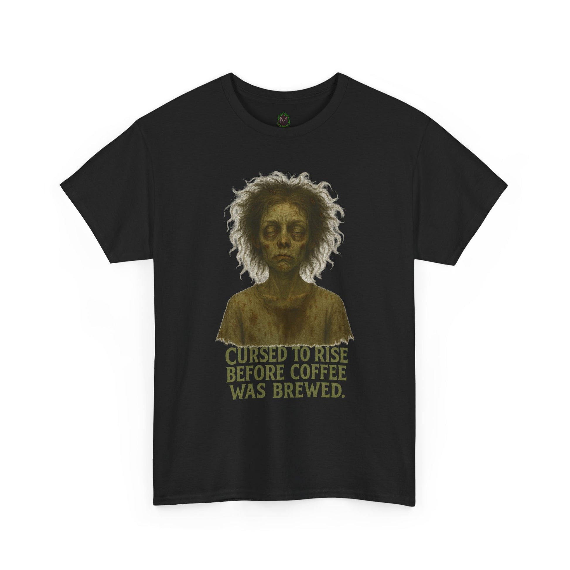 Cursed to Rise Before Coffee Tee | Zombie Morning Coffee Shirt