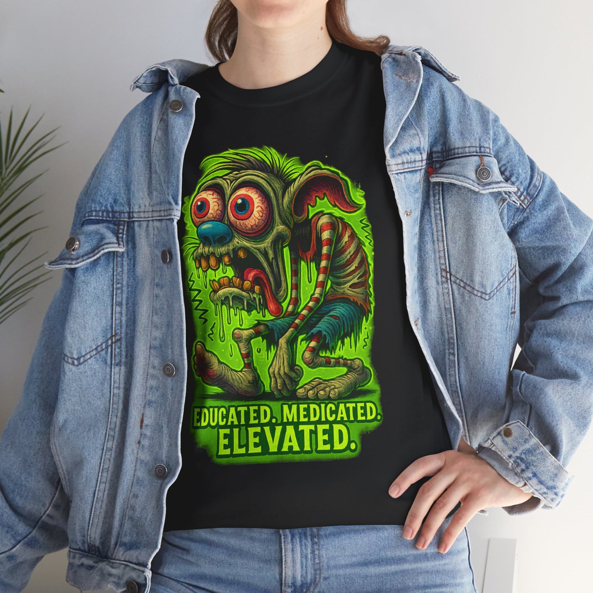 Educated. Medicated. Elevated. – Zombie Slacker T-Shirt
