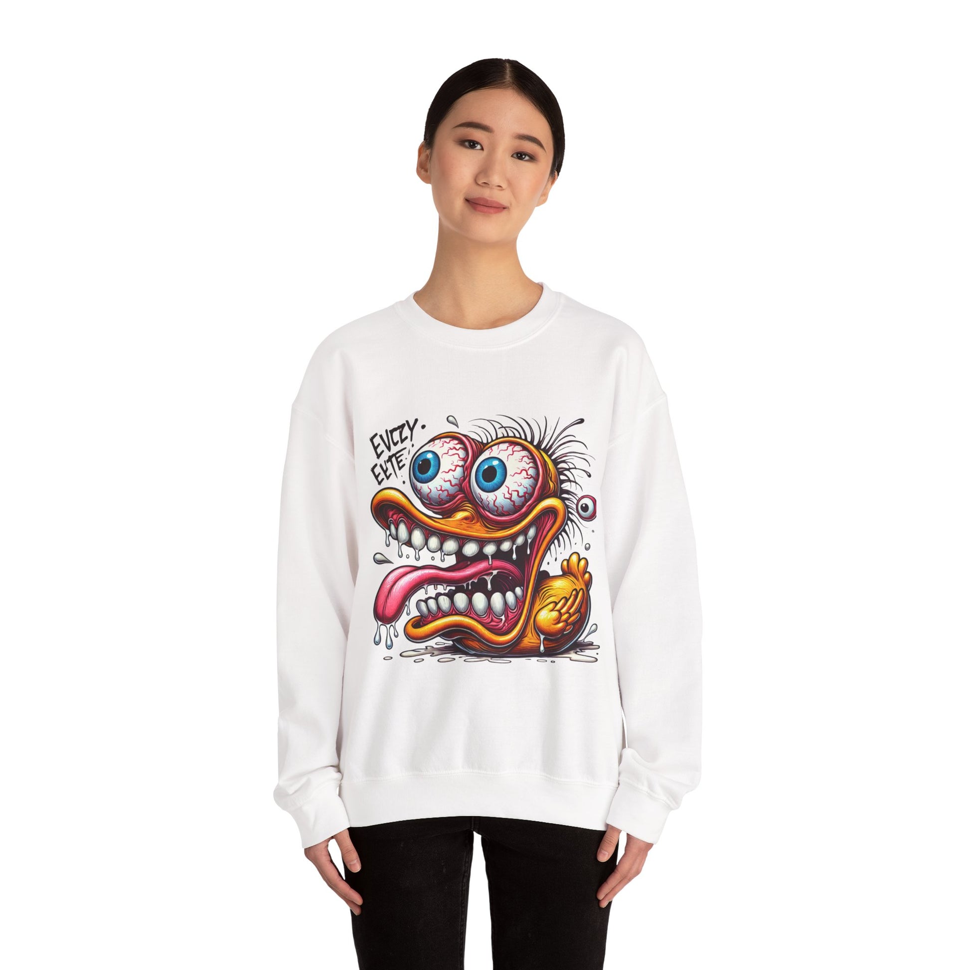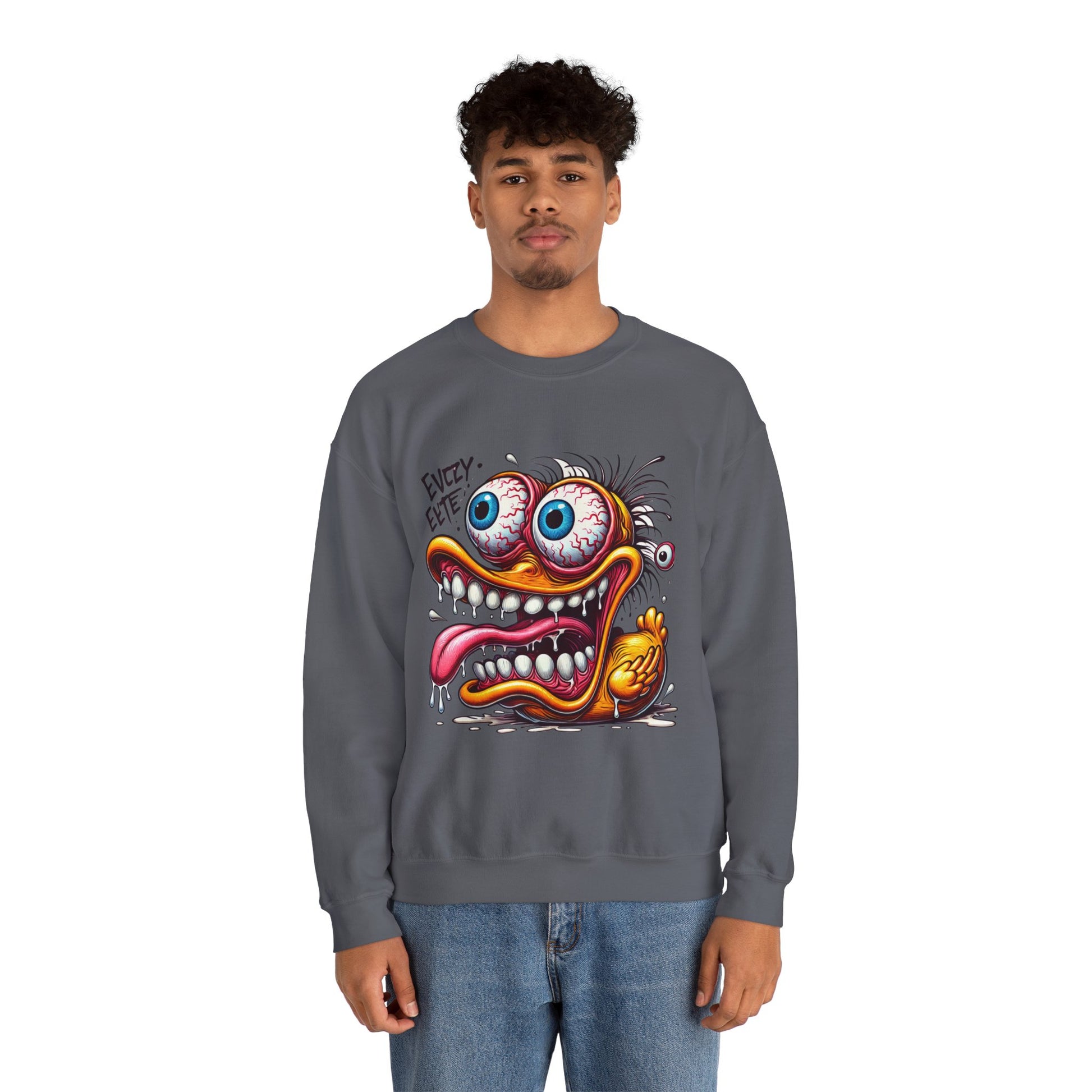 This duck’s lost it—literally. The Eyeball Escape Duck crewneck features a frenzied cartoon quacker with bulging eyes, a wild tongue, and unhinged energy. Perfect for humor lovers, shock value seekers, and anyone who enjoys cartoon chaos with a side of absurdity.