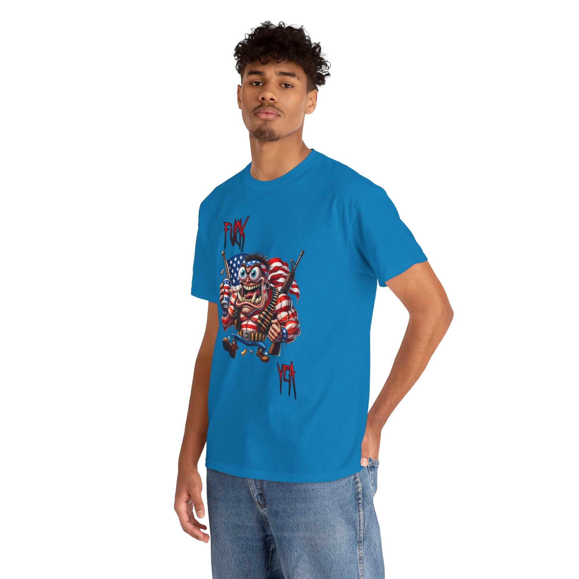 Introducing an eye-catching Unisex Heavy Cotton Tee, perfect for those who love to make a bold statement. This t-shirt features a unique design that radiates a fun and rebellious spirit, making it an ideal choice for casual outings or laid-back gatherings. Its classic fit and crew neckline ensure comfort, whether you're out with friends or enjoying a relaxed day at home. This tee is particularly relevant for those celebrating Independence Day, Memorial Day, or any casual events where individuality shines. It’s perfect for anyone who appreciates edgy art and values comfort in their wardrobe.