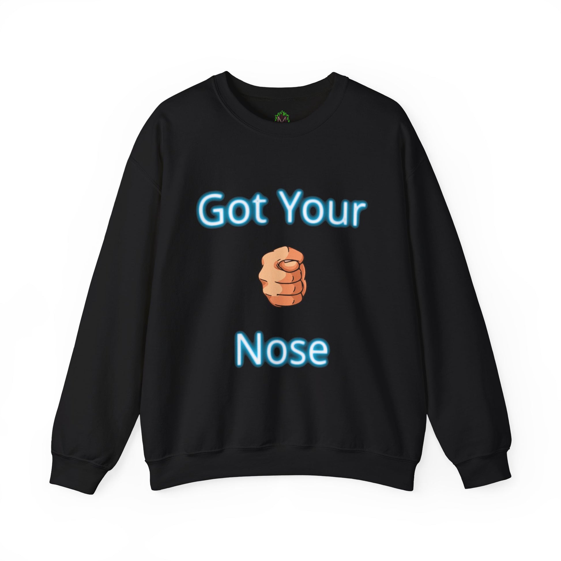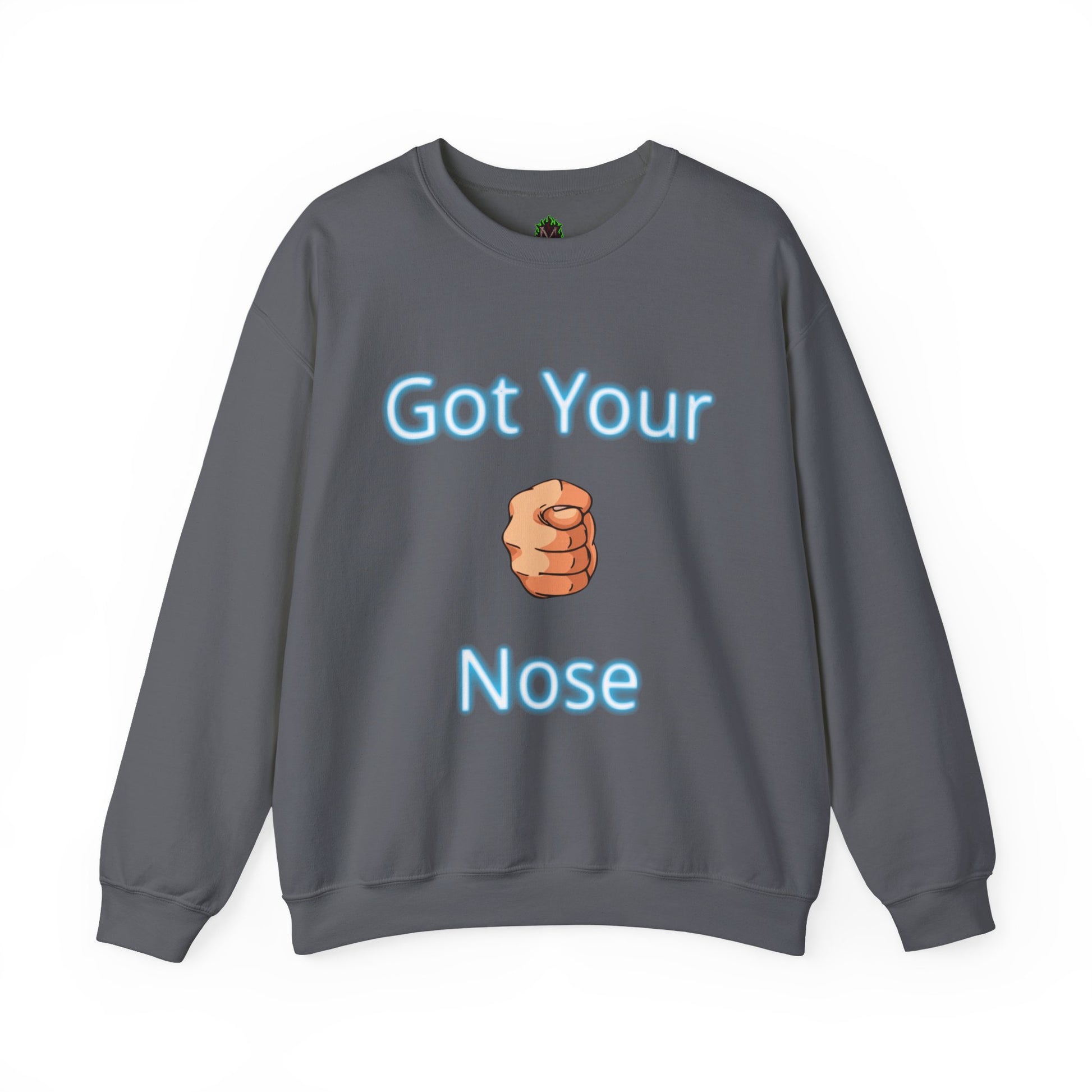 A playful throwback to the classic childhood prank, this cozy crewneck features bold blue text and the iconic “got your nose” hand gesture. Perfect for humor lovers and anyone who doesn’t take life too seriously.