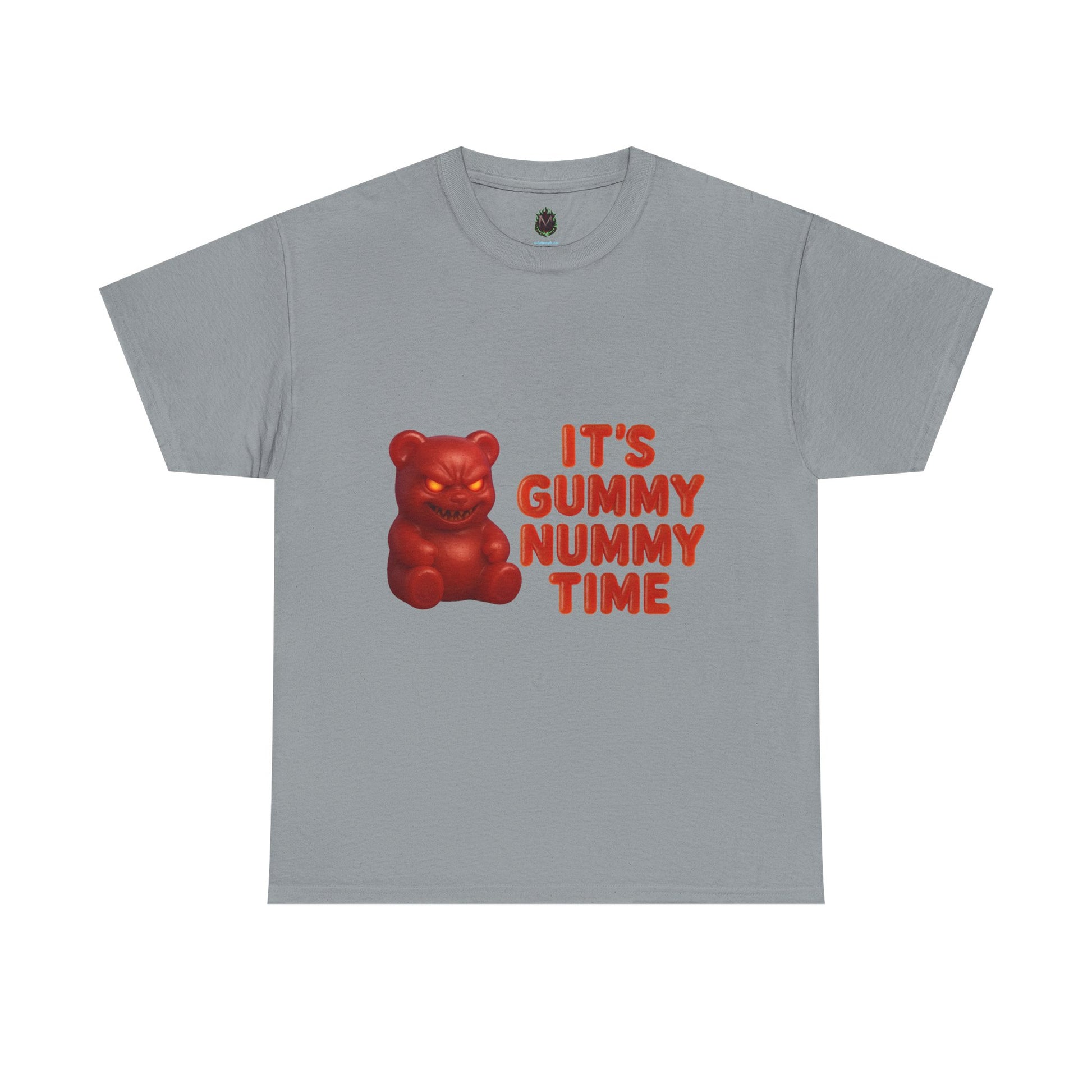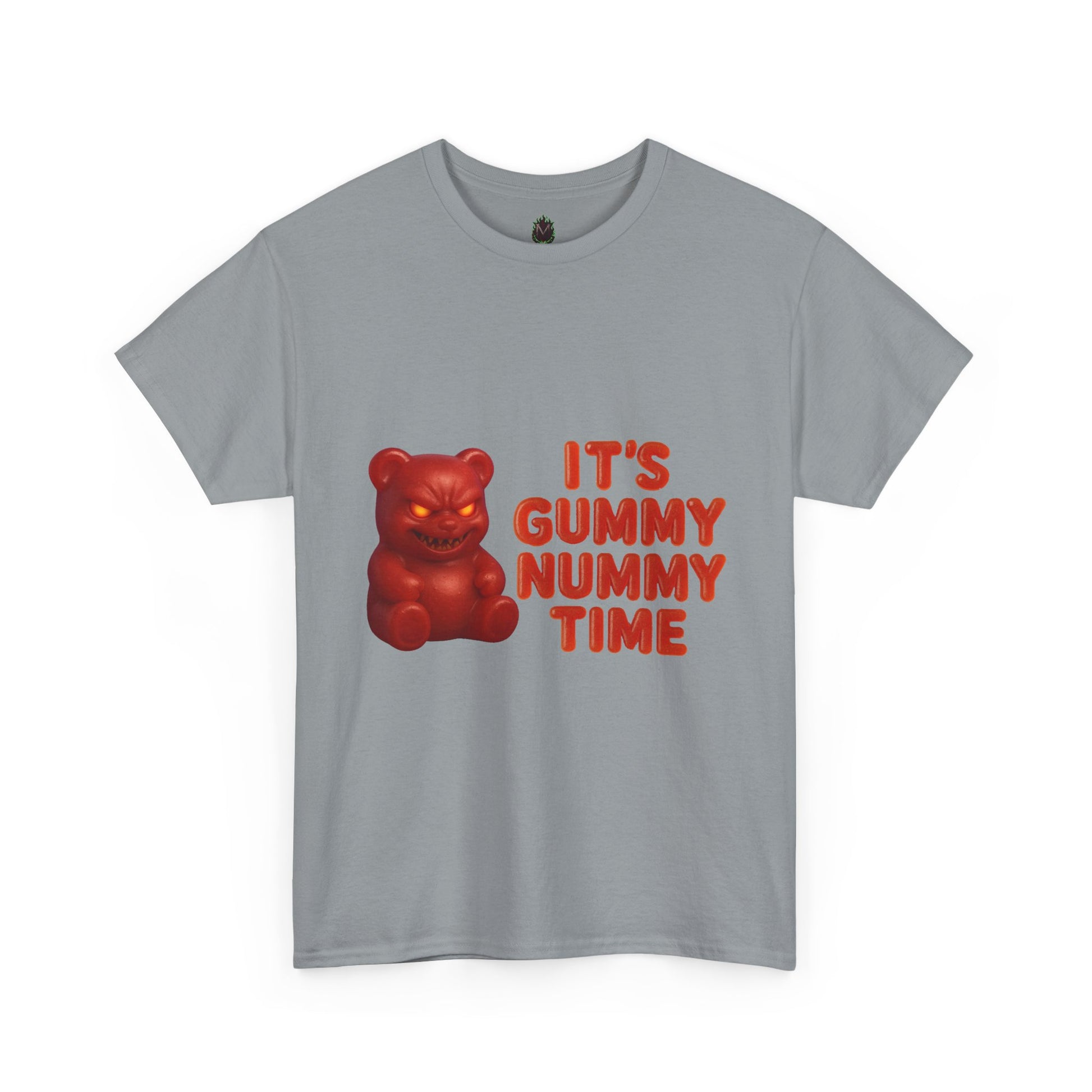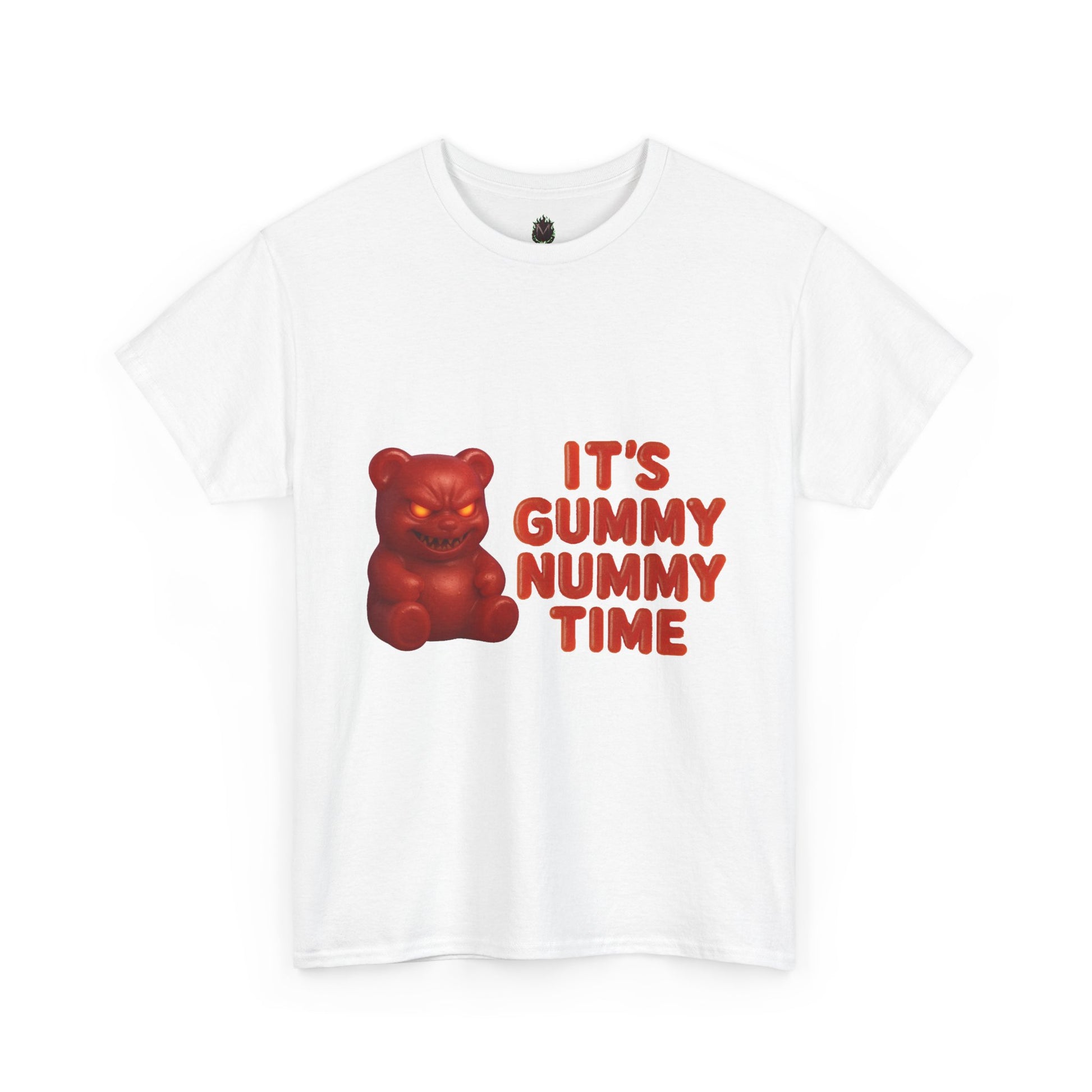 Sweet? Think again. This gummy's got a grudge—and it’s nummy time. Featuring a devilishly delightful gummy bear with a menacing grin and bold red “It’s Gummy Nummy Time” lettering, this shirt is twisted snack-time energy you can wear. Perfect for the weird, the wild, and the wonderfully unhinged.