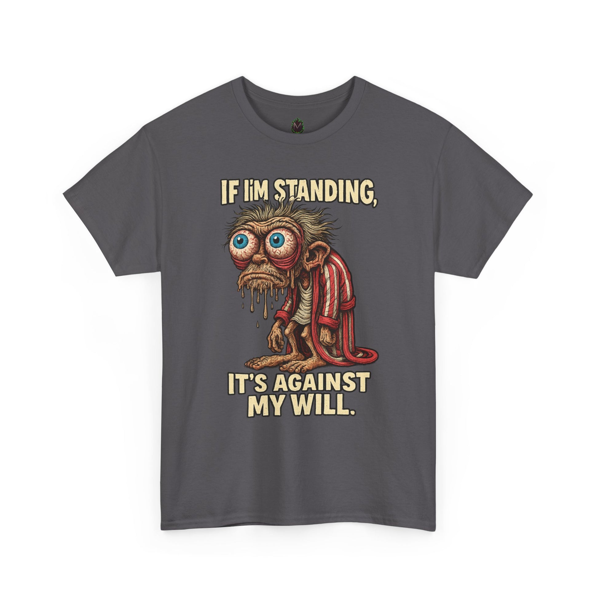 This tee captures that morning mood with raw, reluctant honesty and an oozing zombie energy that says “Don’t talk to me unless you brought a nap.”