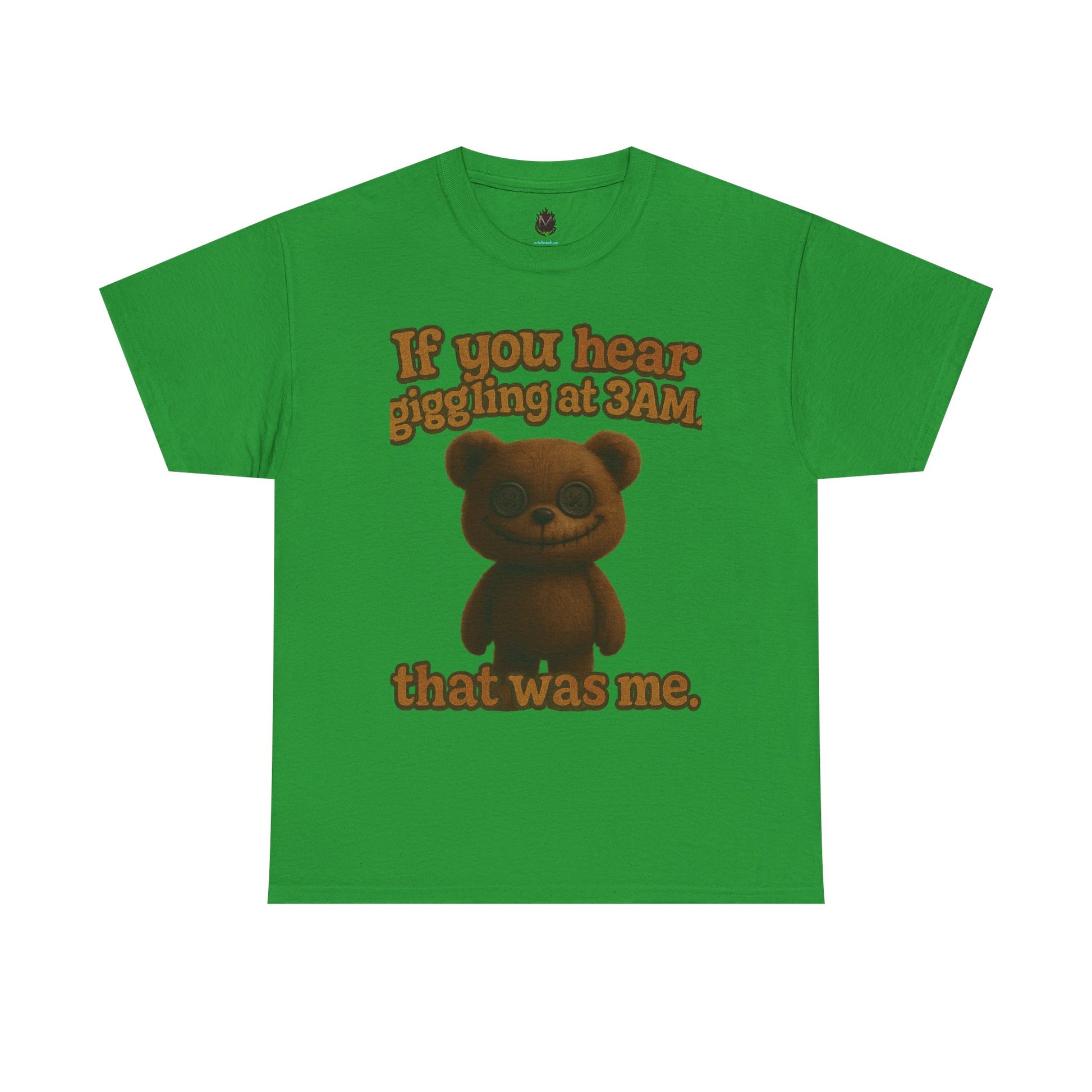Soft, worn-in cotton meets a little bedtime mischief. This classic crew tee carries a cuddly vintage bear illustration with the playful line: “If you hear giggling at 3AM that was me.” It reads like a whispered secret between night owls — cozy, slightly cheeky, and made to be lived in. The medium-weight fabric holds prints clearly while staying breathable for late-night snacks, lazy mornings, or low-key hangouts. Let it be the shirt you grab when you want to feel nostalgic, a little mischievous, and wholly comfortable.