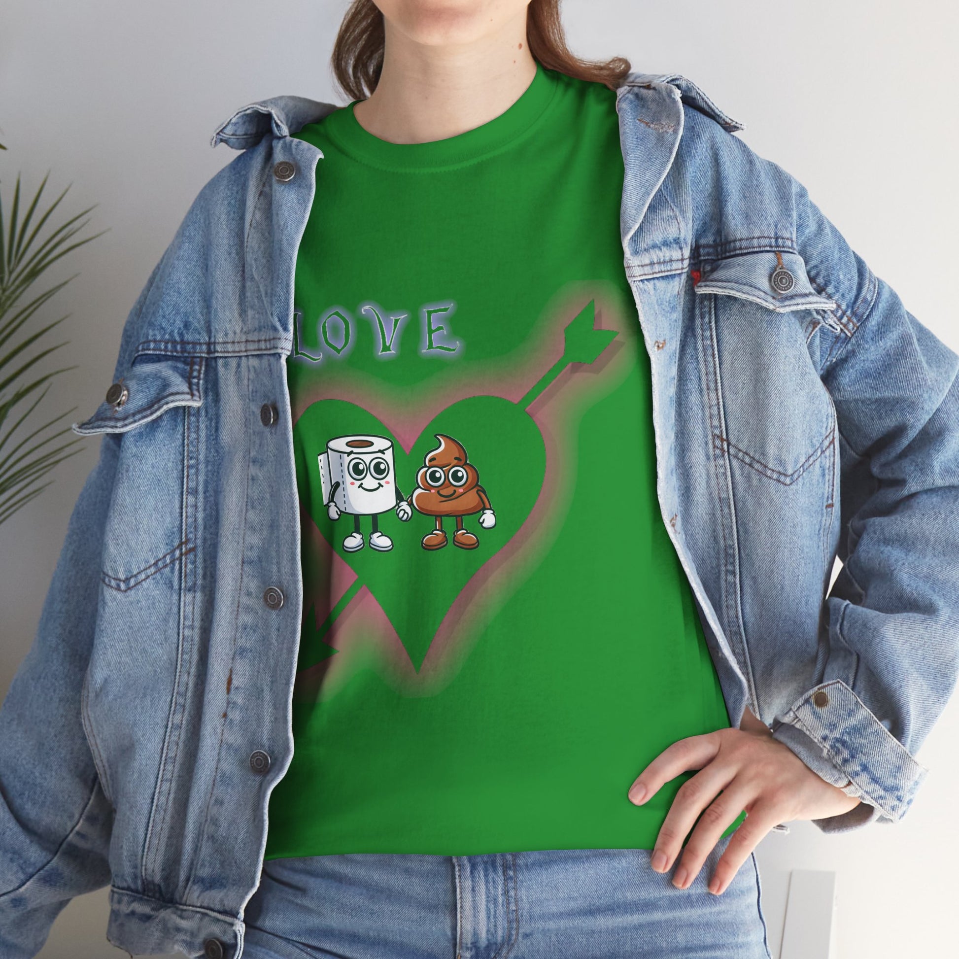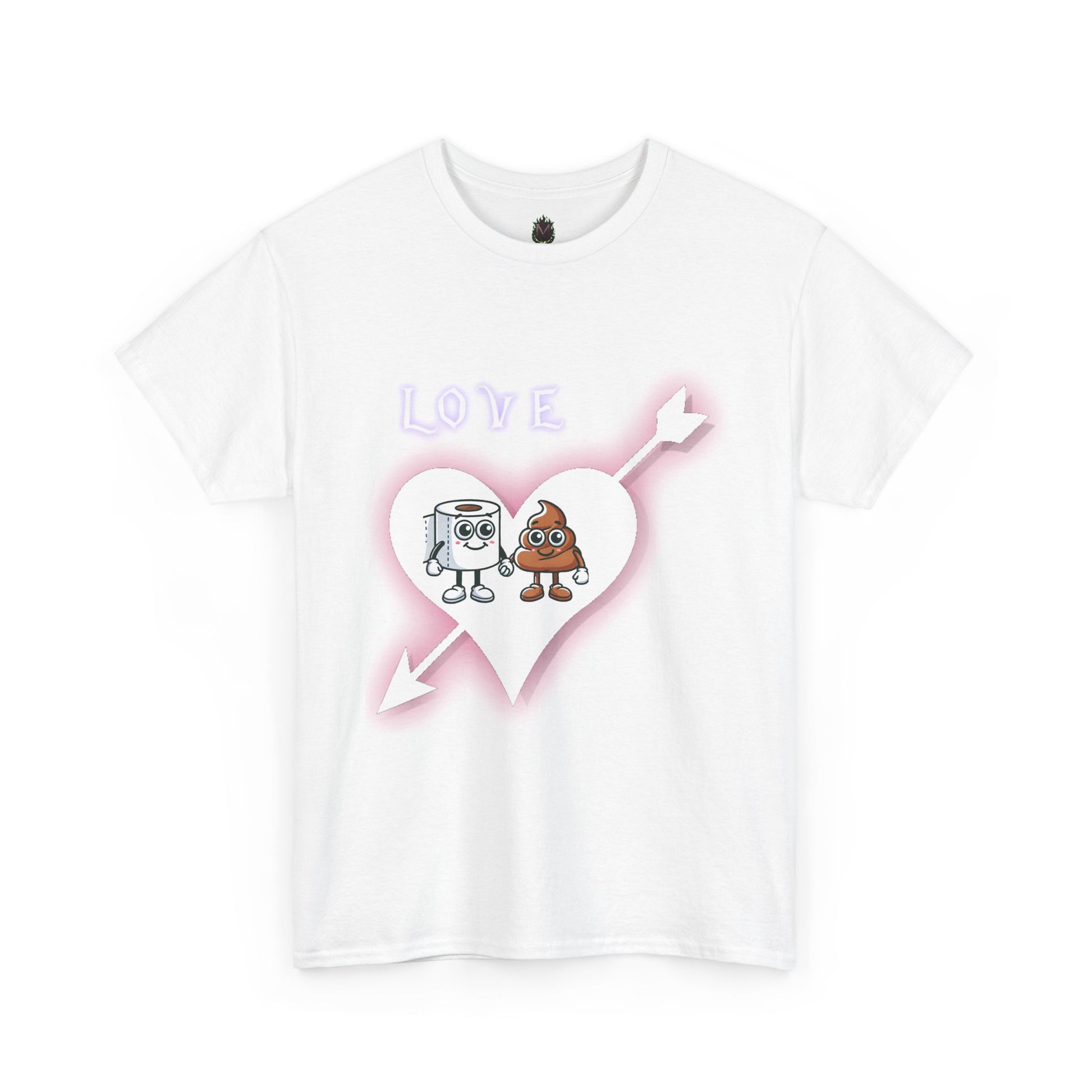 They say opposites attract, and nothing proves it better than this hilarious "Love" T-Shirt! Featuring an adorable toilet paper roll and poop emoji holding hands inside a heart with an arrow, this quirky design is the ultimate expression of unbreakable bonds, true love, and a great sense of humor!
