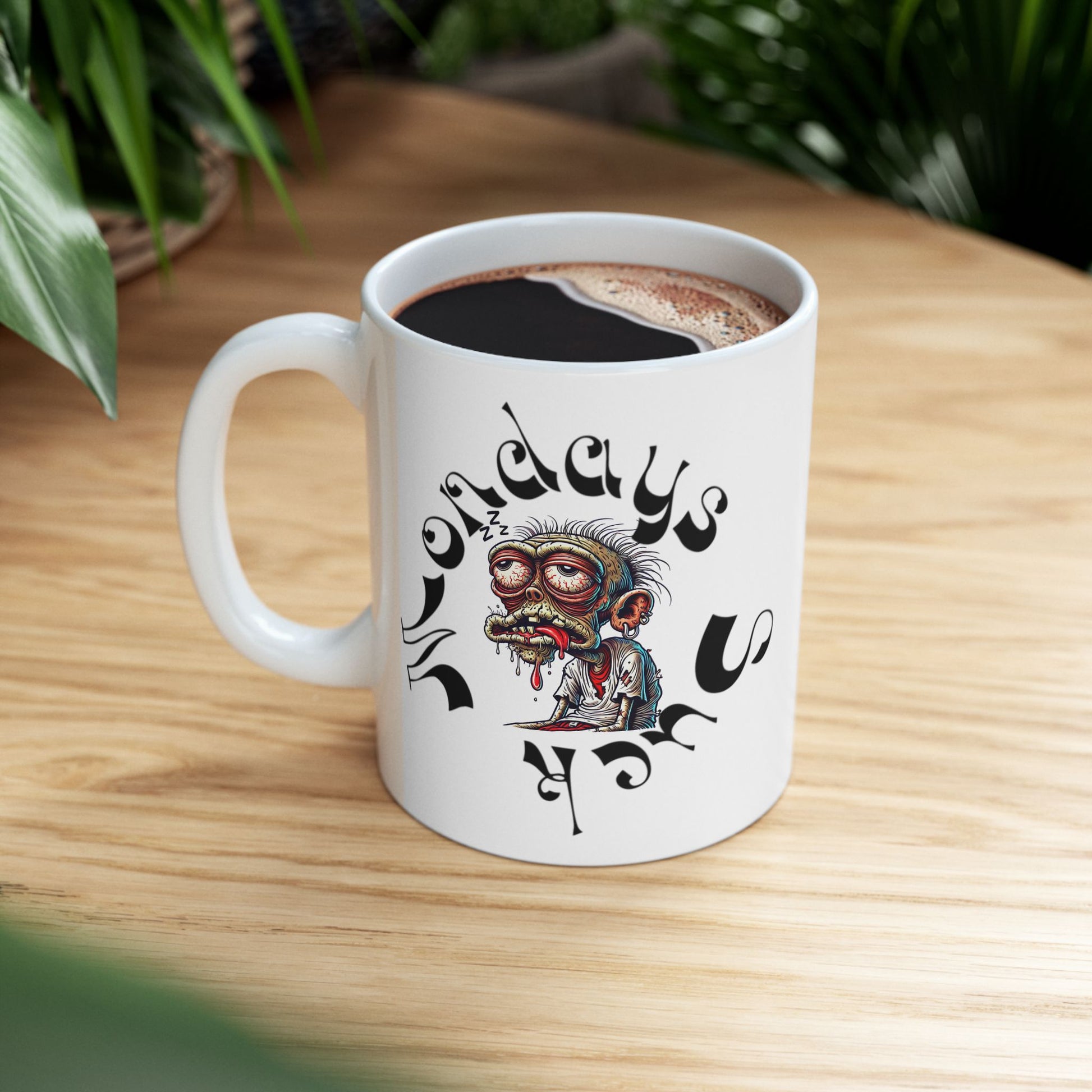This design doesn’t sugarcoat anything—and neither should your coffee. A twisted mix of horror, humor, and honesty, this mug is made for anyone who drags themselves into the week kicking and screaming (or silently sobbing with caffeine).