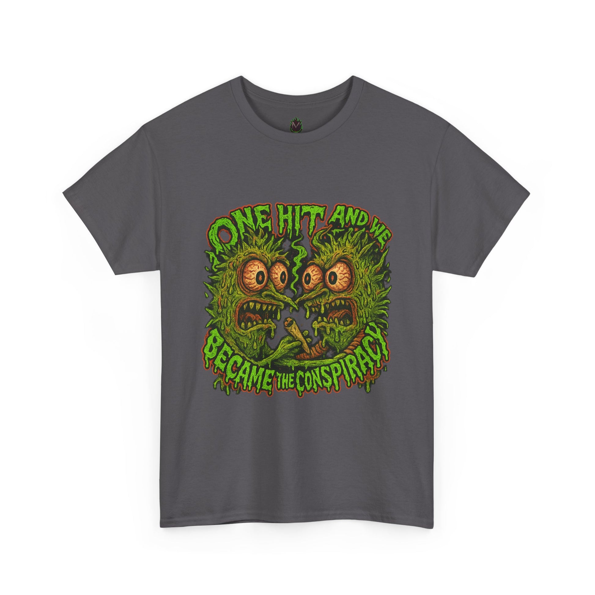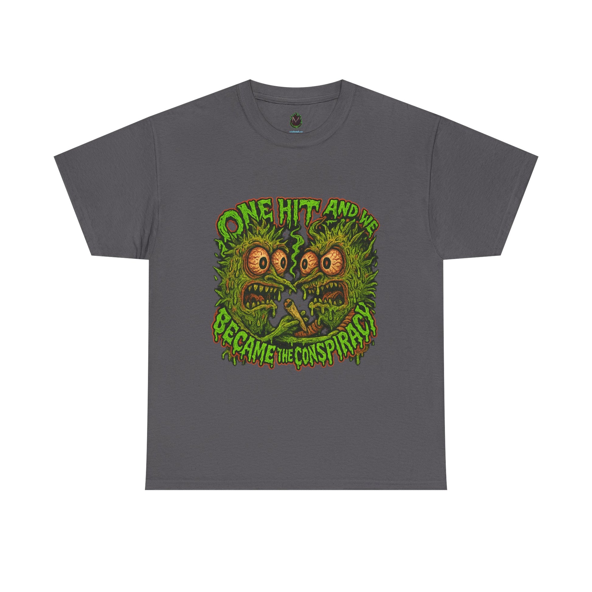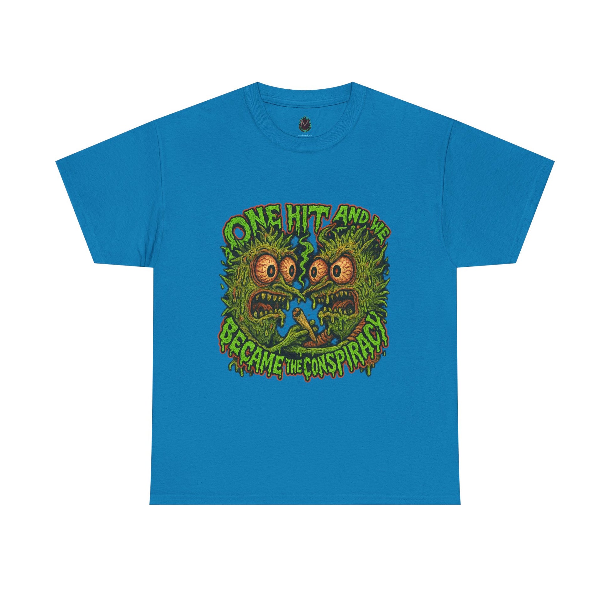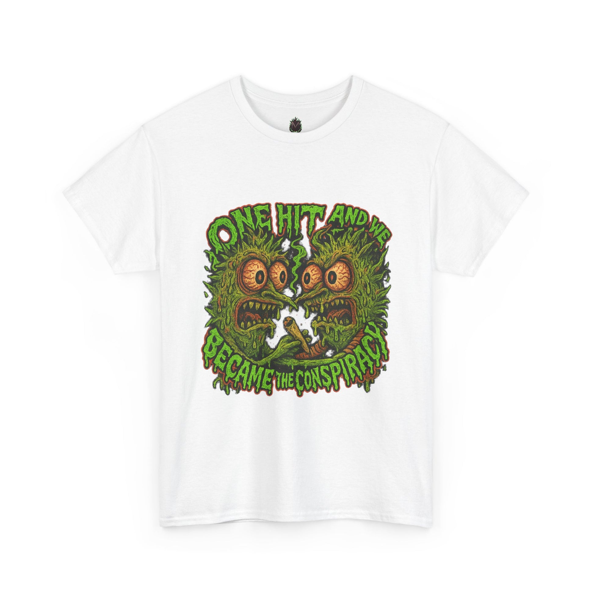One Hit and We Became the Conspiracy – Trippy Weed Monster T-Shirt