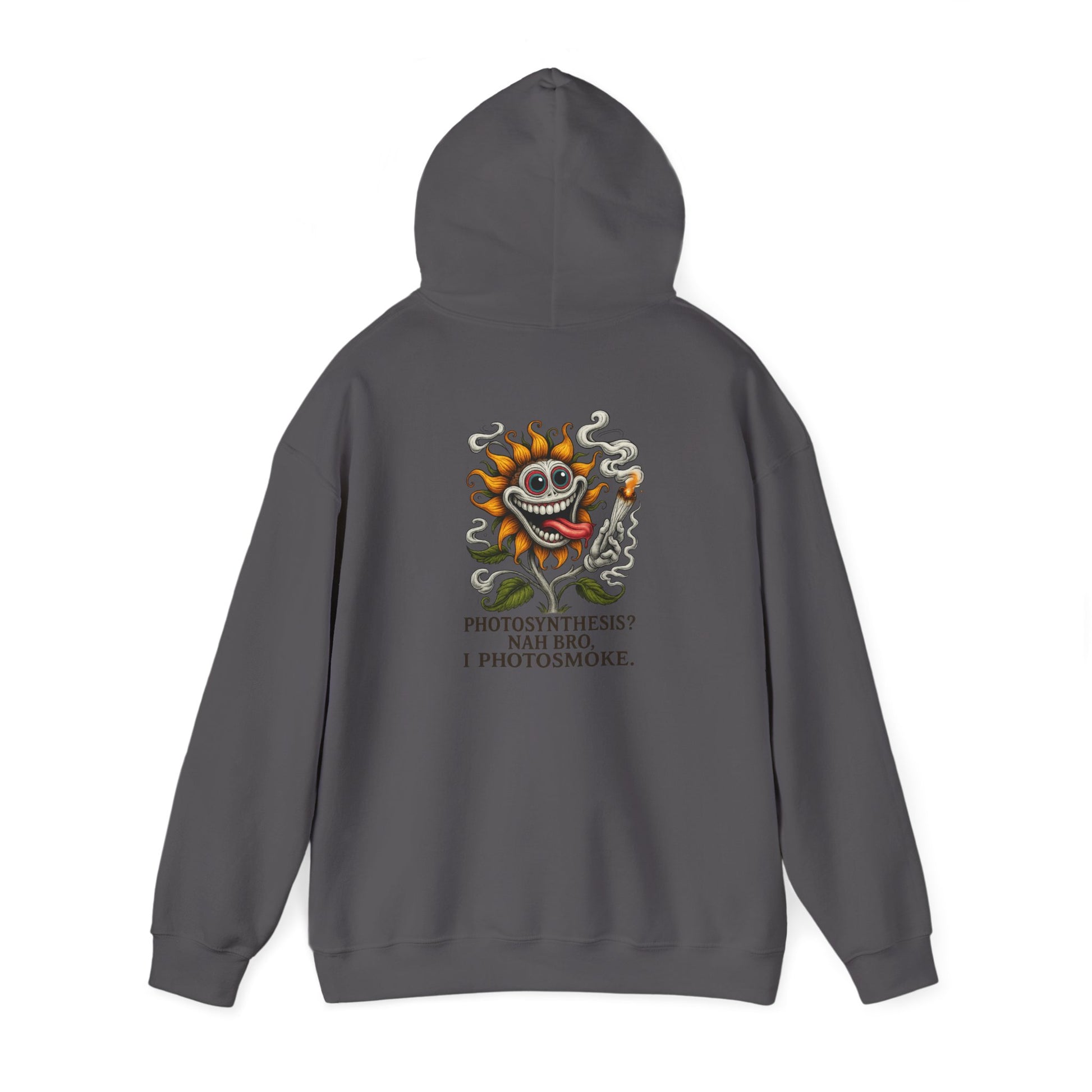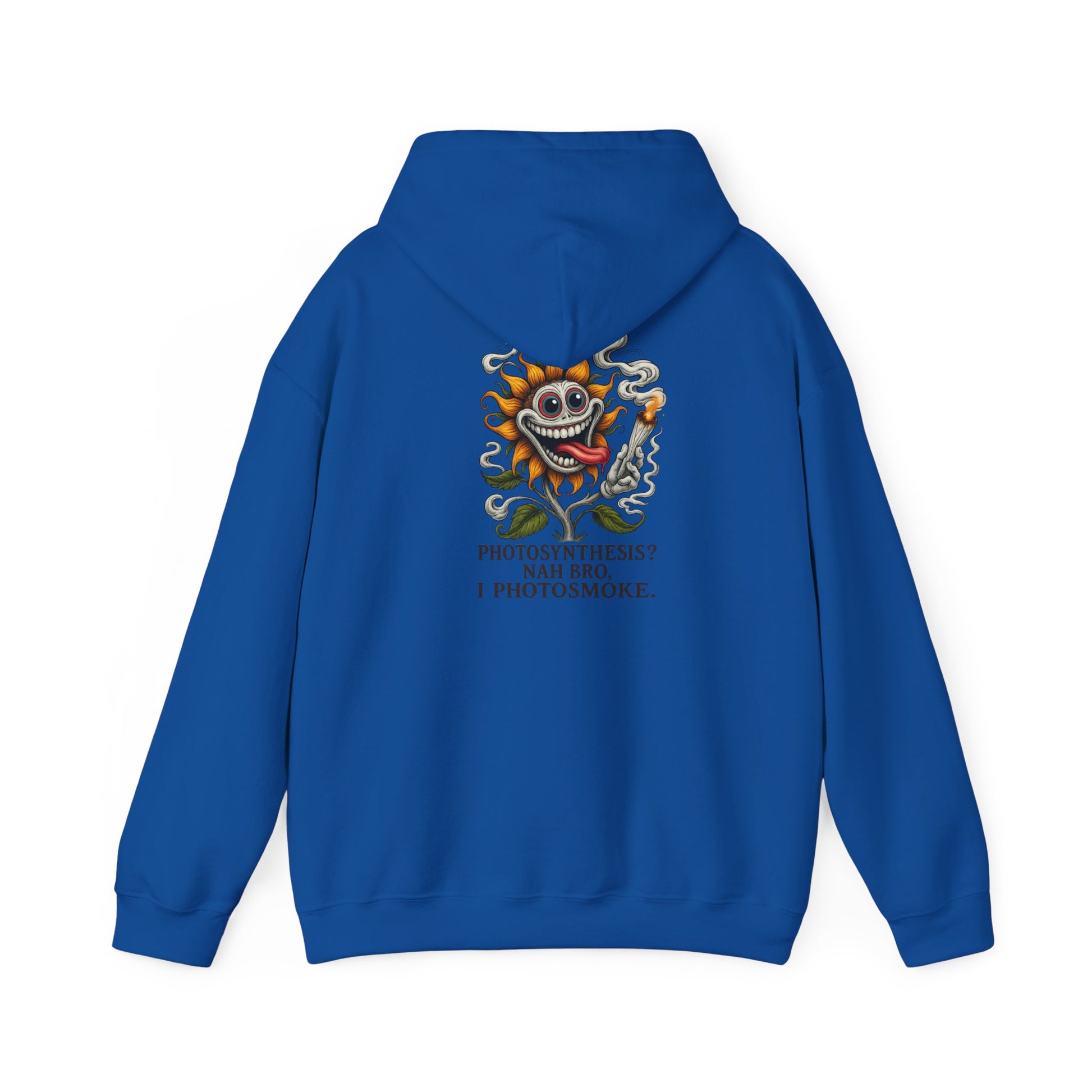 This hoodie features a fried, grinning sun puffing hard and glowing harder. With wild eyes, leafy curls, and a joint bigger than its orbit, this solar burnout is living high above the clouds.