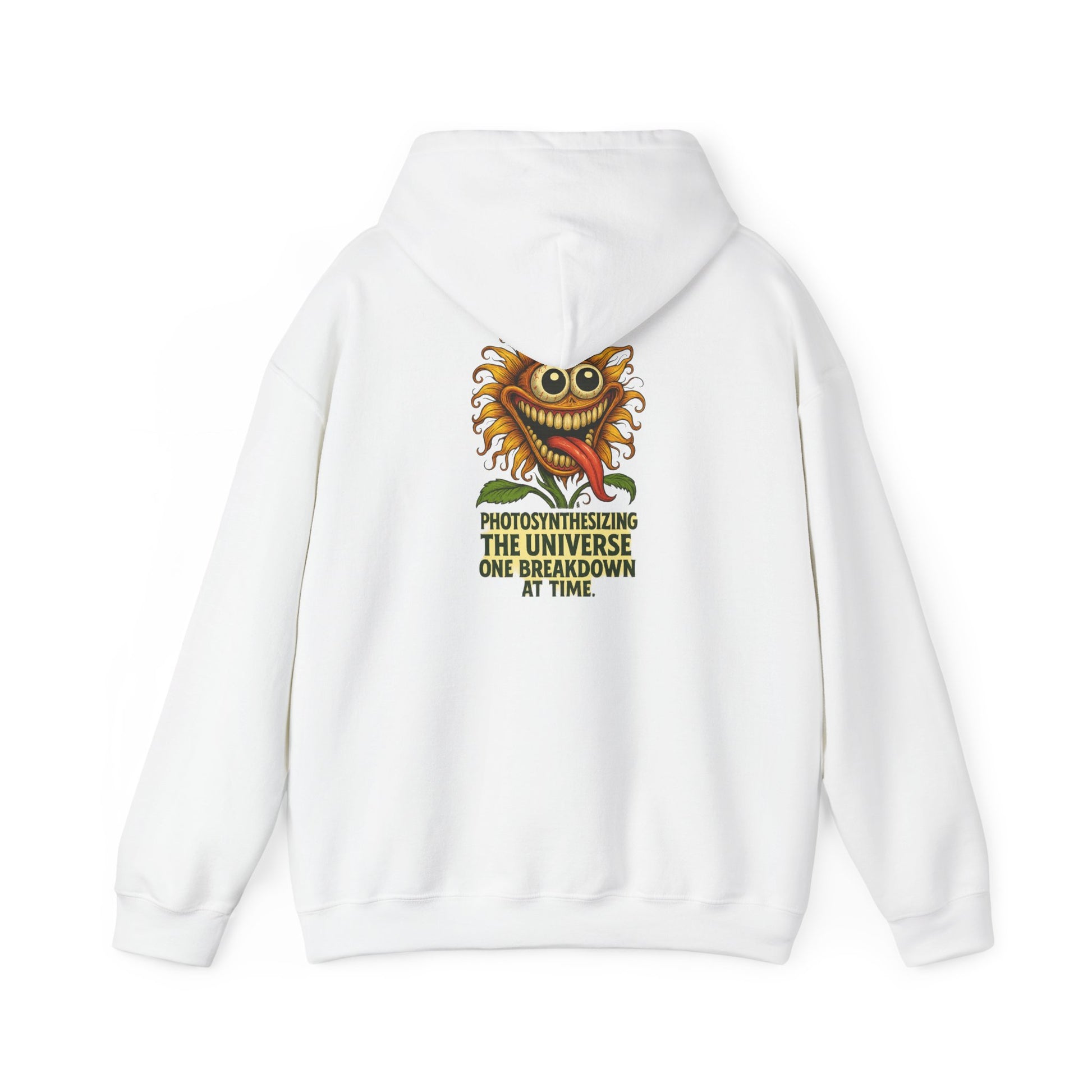 This hoodie features a wide-eyed, frazzled flower trying its damn best to stay rooted while everything burns. For those who are growing, glowing, and totally losing it.