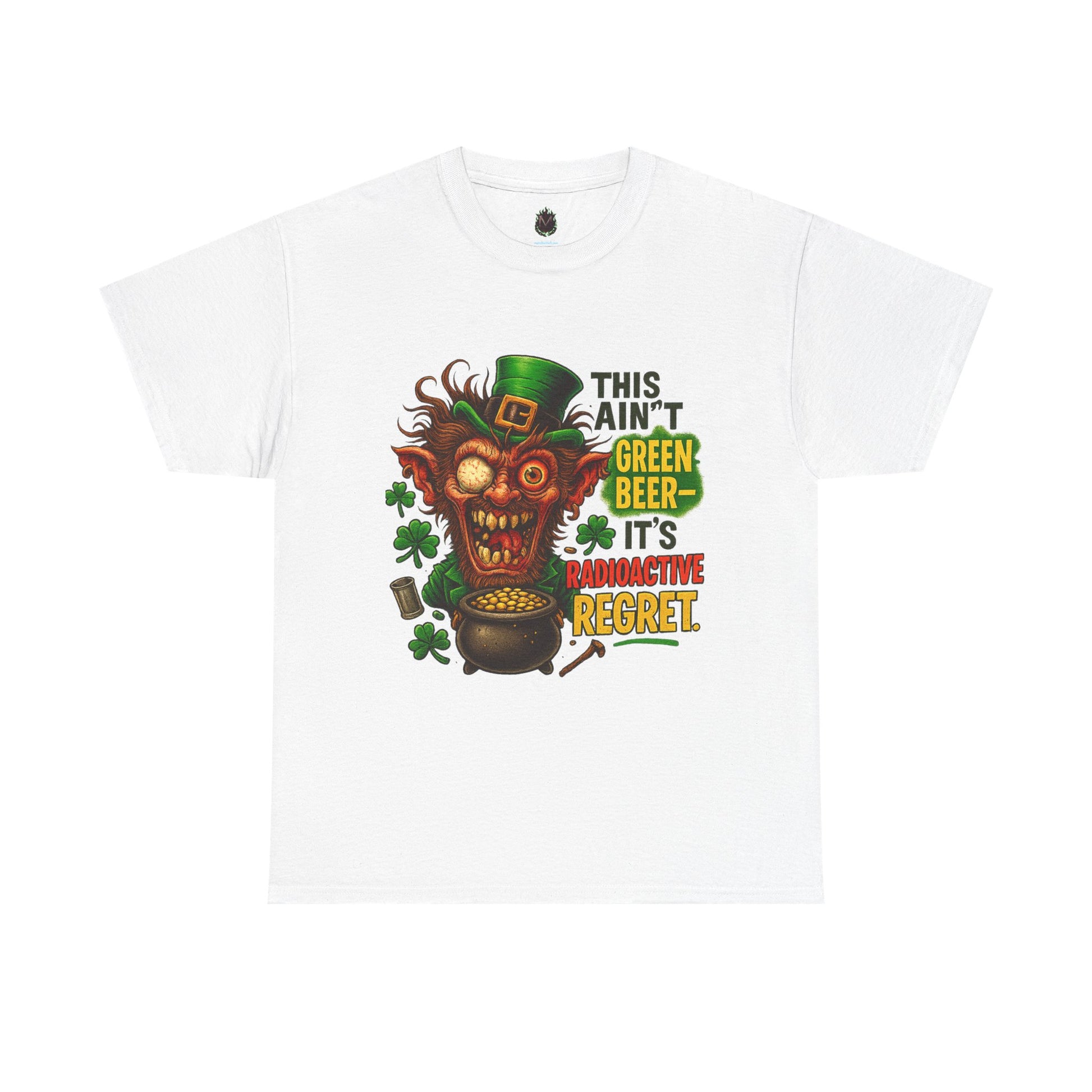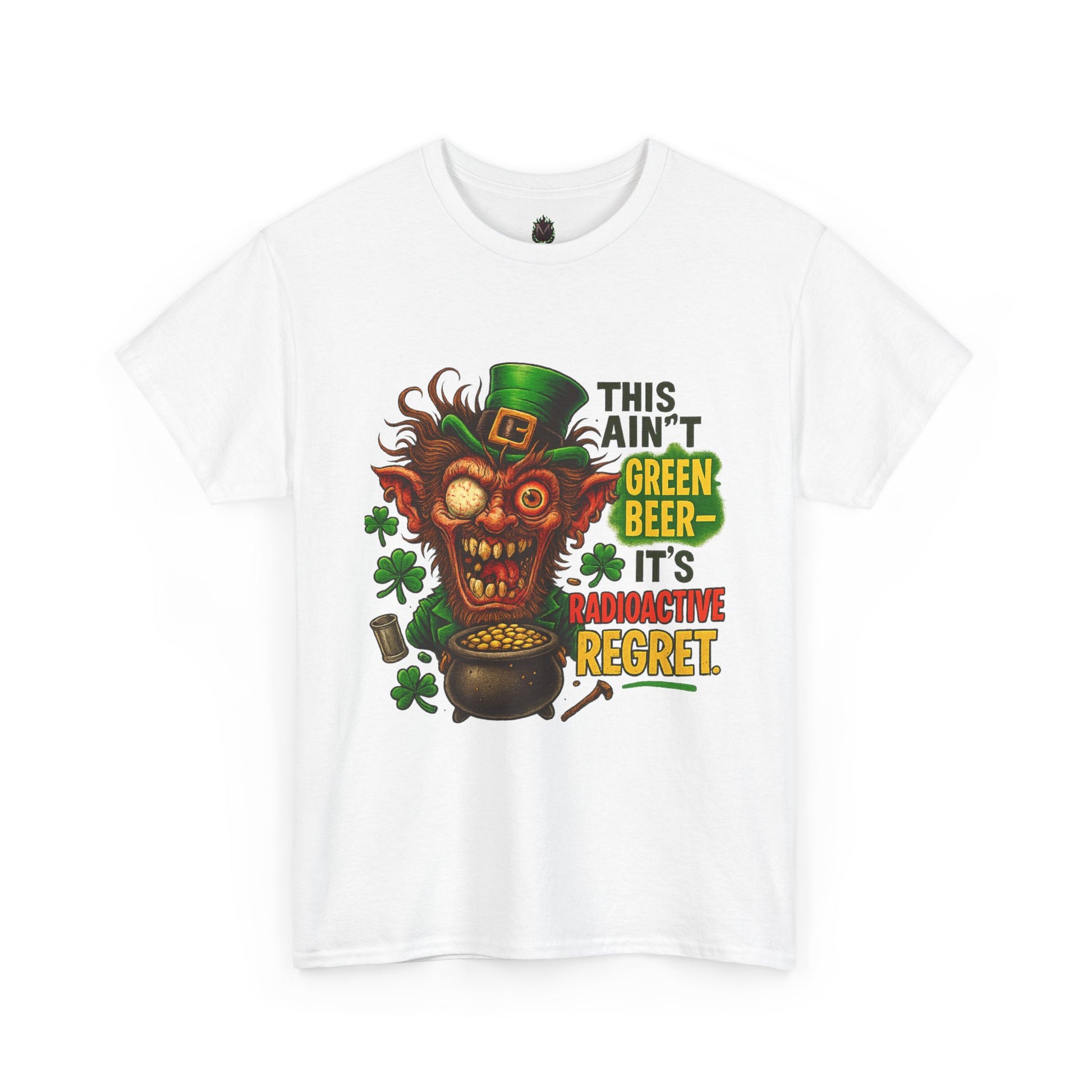 With a rabid leprechaun, suspicious gold, and clovers that definitely aren’t FDA approved, this design delivers full-blown festive regret.