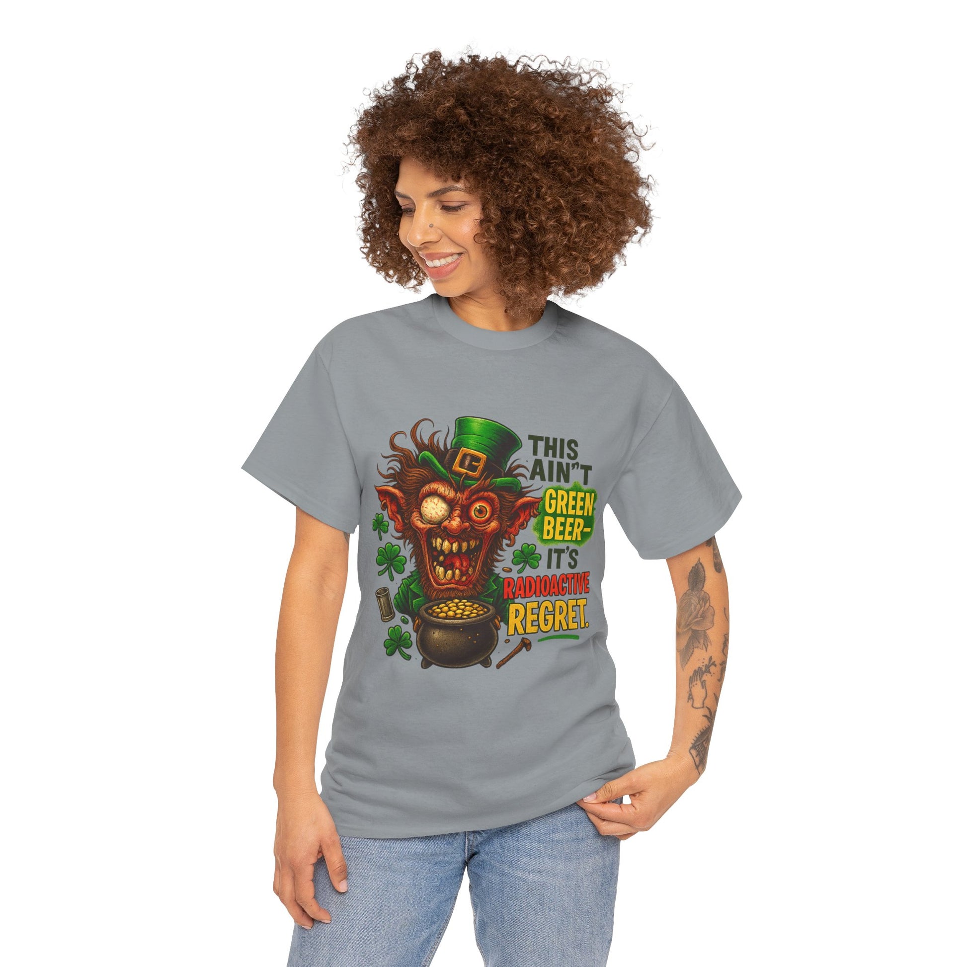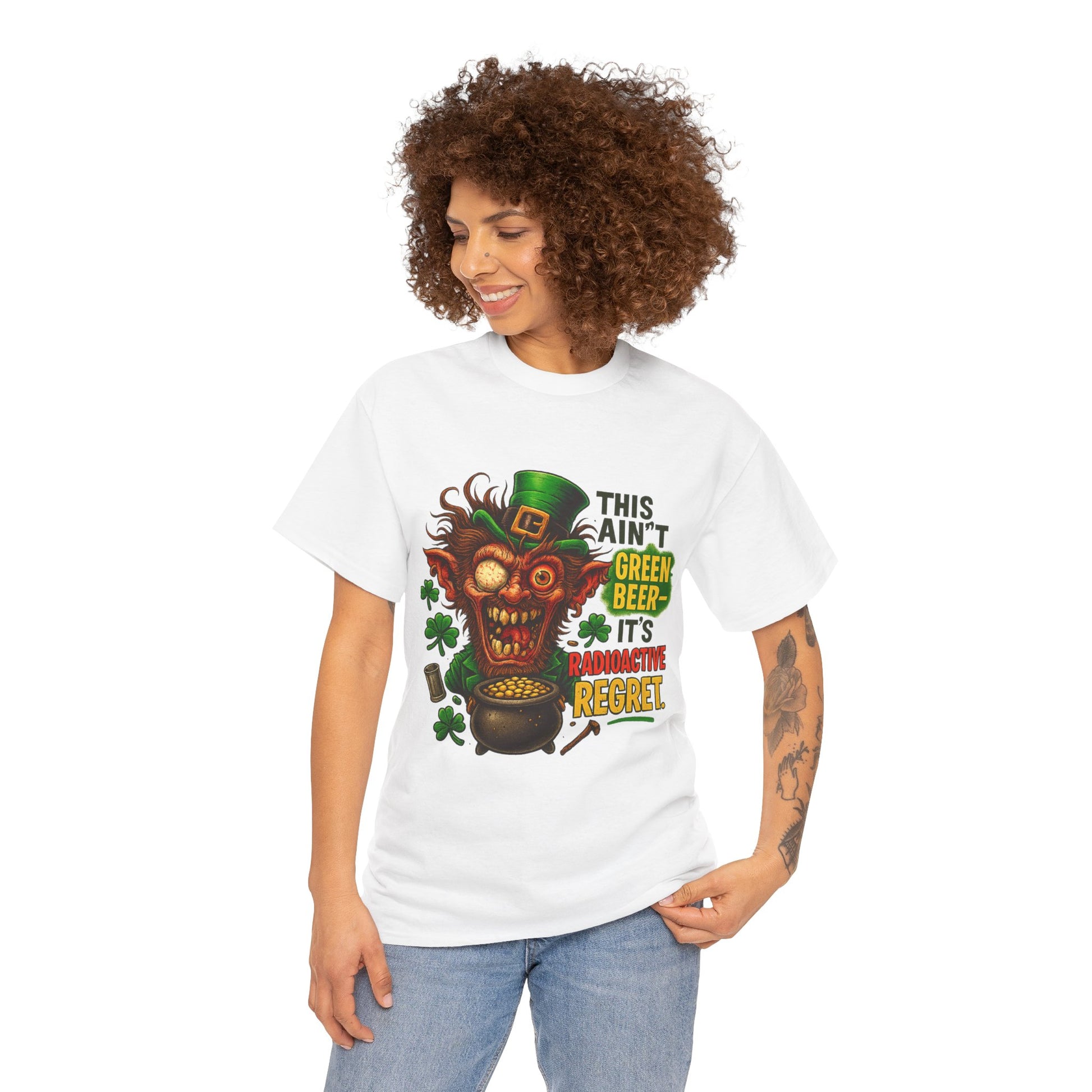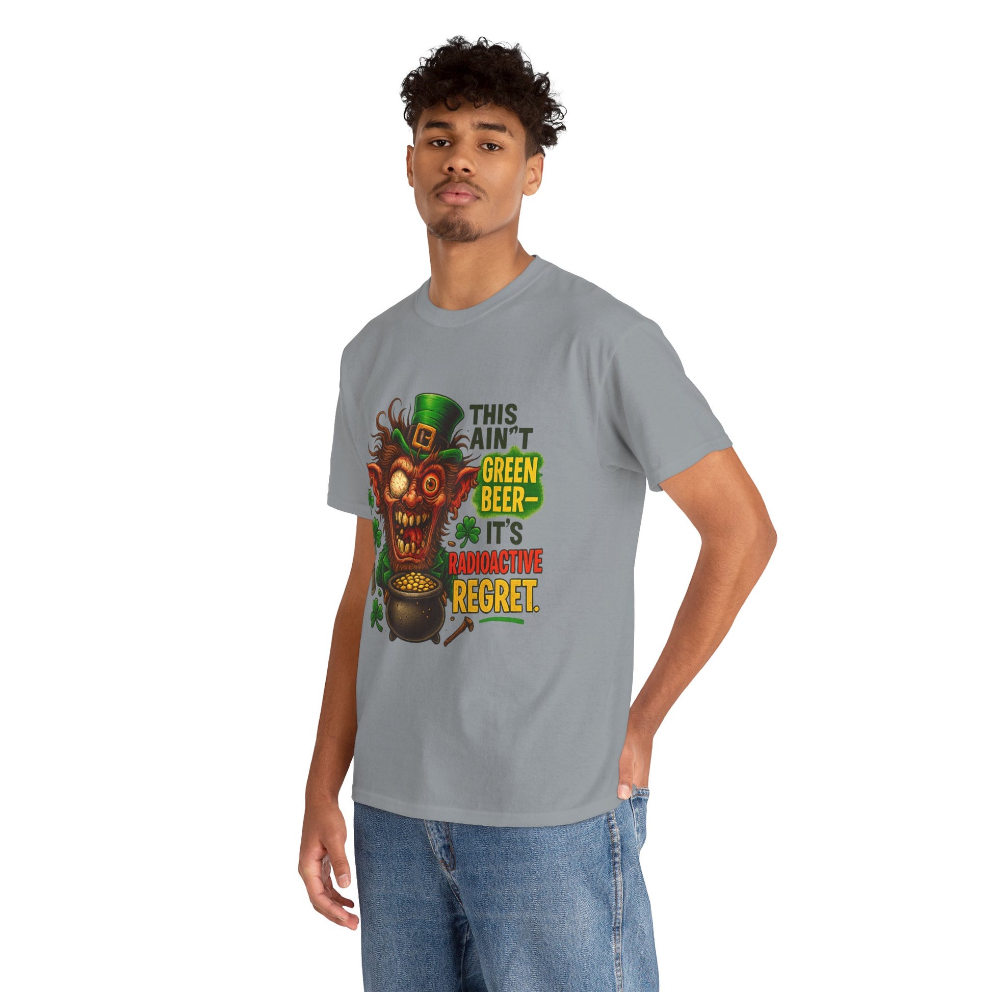 This tee captures that cursed moment when St. Paddy’s cheer turns nuclear.