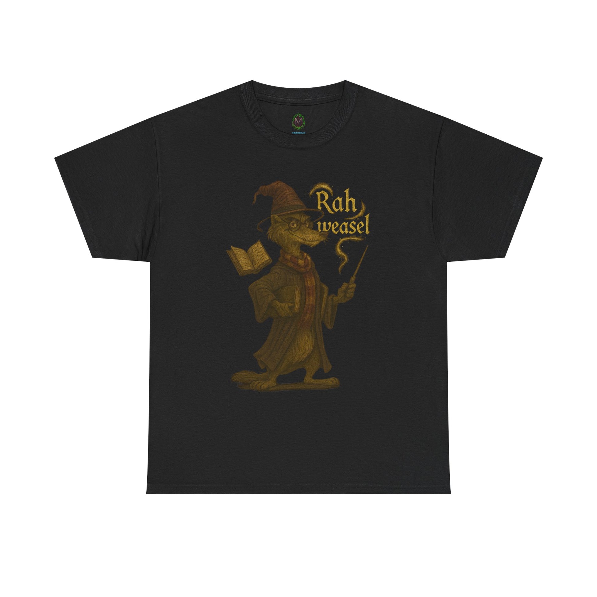 This vintage-style Rah Weasel tee casts a perfectly absurd spell on fans of parody, fantasy, and furry mischief-makers.