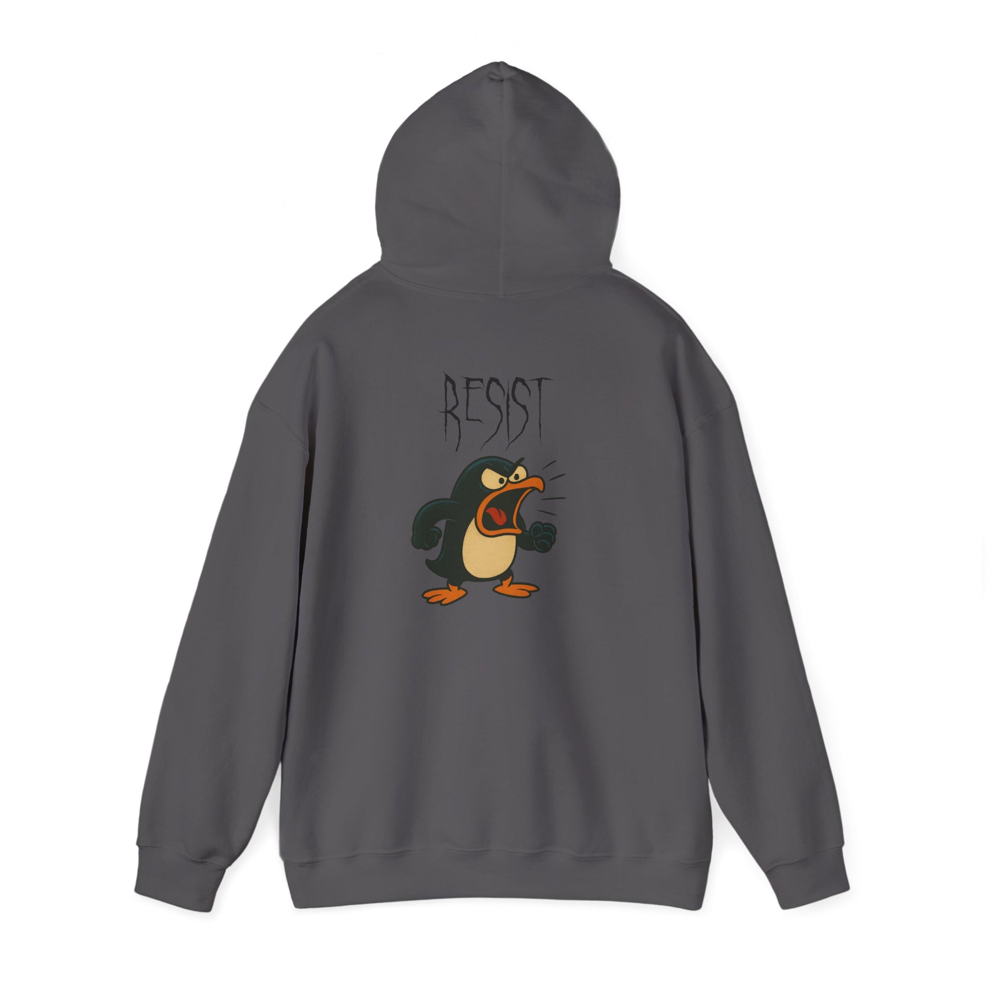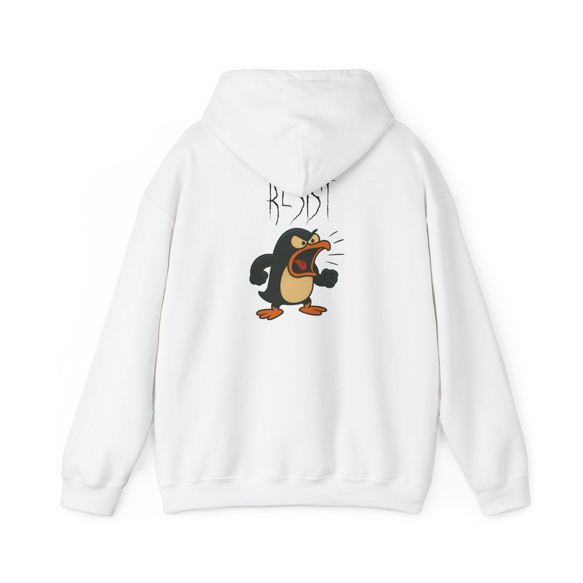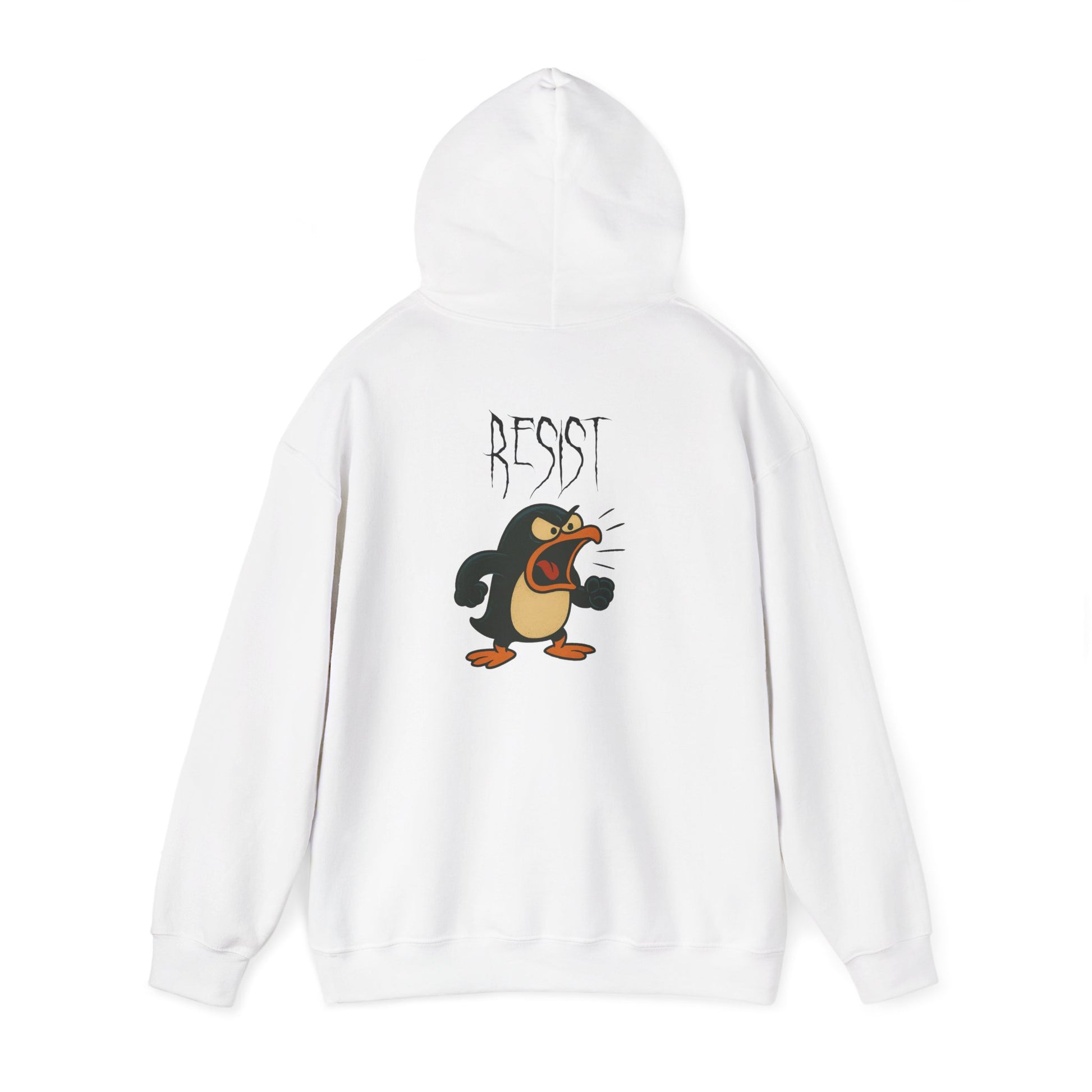 Tiny. Pissed. Ready to riot. This hoodie features a furious cartoon penguin beneath the word “RESIST” in sharp, scratchy lettering. It’s part rebellion, part rage, and all attitude. Whether you're resisting stupidity, the system, or just mornings—this hoodie speaks your fury.