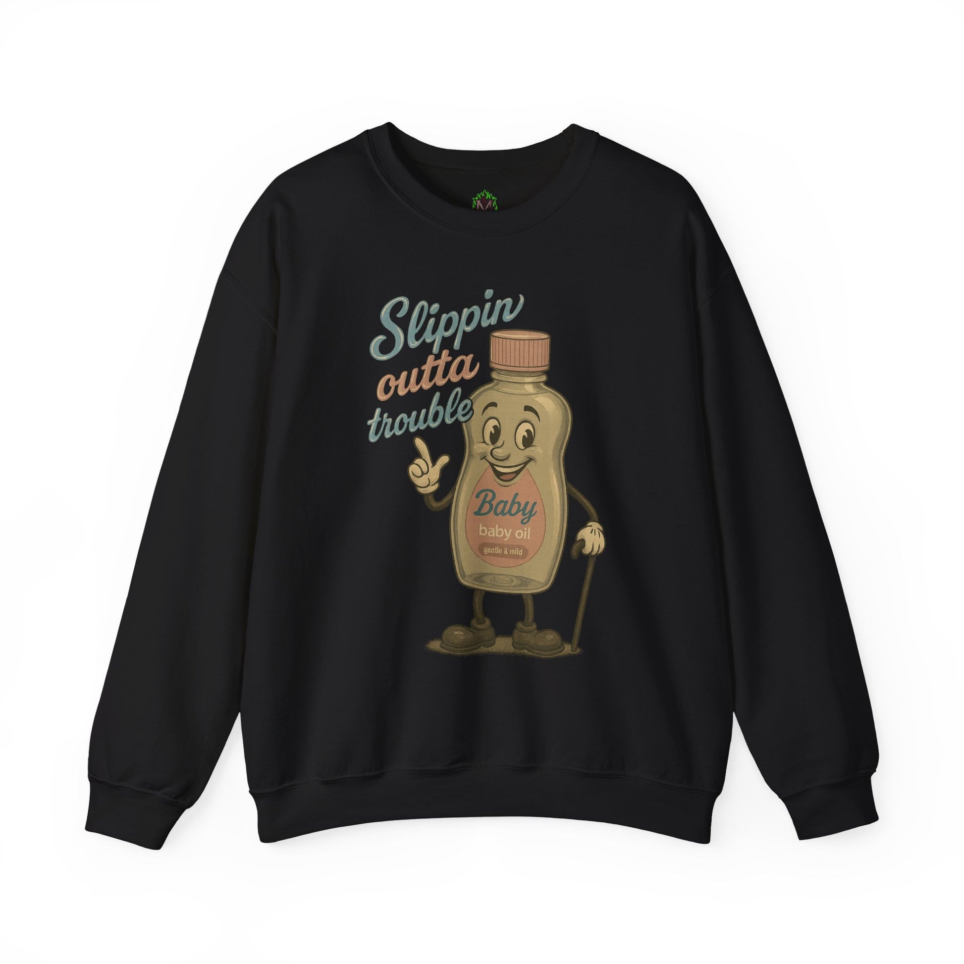 Meet the smoothest operator in town—this vintage-style baby oil bottle knows how to slide past drama and strut out clean. With retro fonts, a smug wink, and one foot always halfway out the door, this shirt’s got escape artistry down to a science.