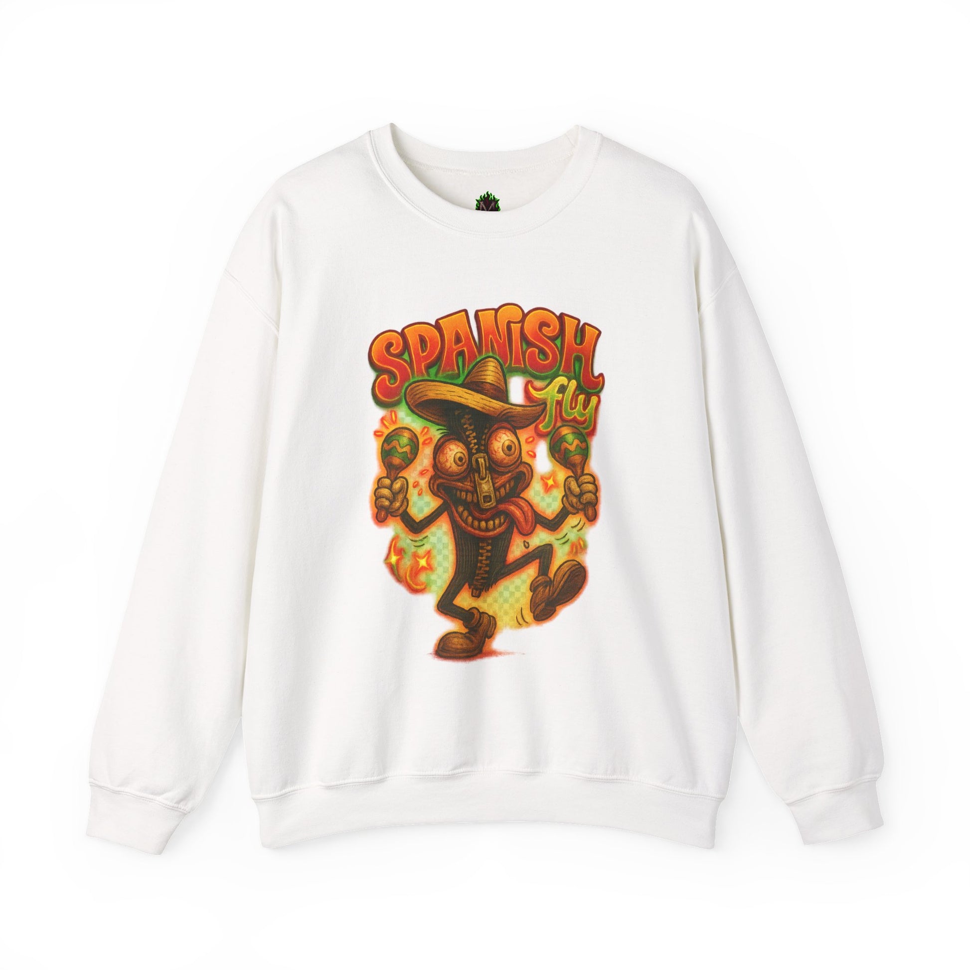 The Spanish Fly tee is a blazing blend of energy, humor, and borderline insanity. With a dancing bug in a sombrero, eyes wide and tongue wilder, this shirt screams fiesta with a bite. Crackling with color and mischief, it’s perfect for those who vibe loud and live louder.