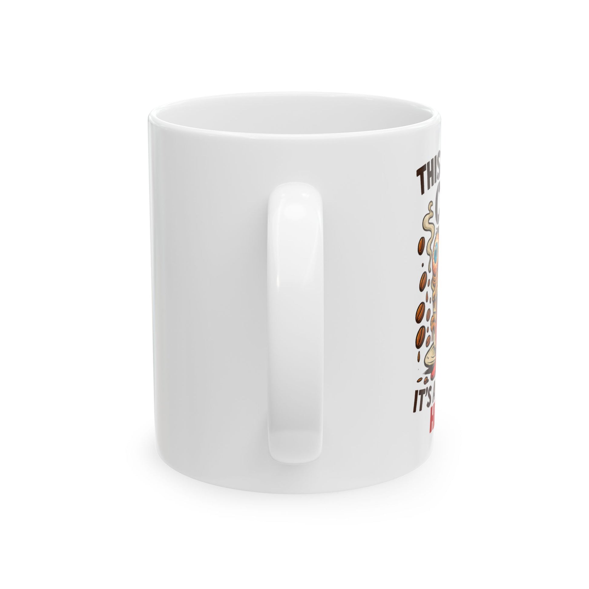 This ridiculous cartoon mug features a deranged coffee cup with bloodshot eyes, melted expression, and one desperate cry for help—literally. It's absurd, hilarious, and way too relatable.