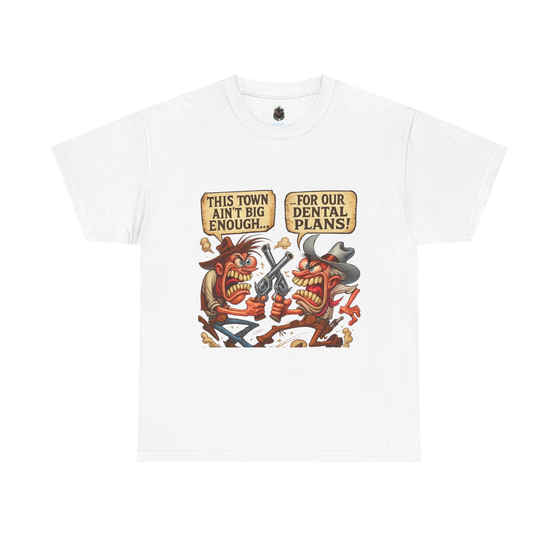 A rootin’-toothin’ standoff over insurance?! This tee stars two crazed cowboys in an old-west shootout, arguing not about gold or land—but dental coverage. “This town ain’t big enough… for our dental plans!” is the showdown we never knew we needed. Great for healthcare workers, pun-lovers, and people who know oral hygiene is a battlefield.